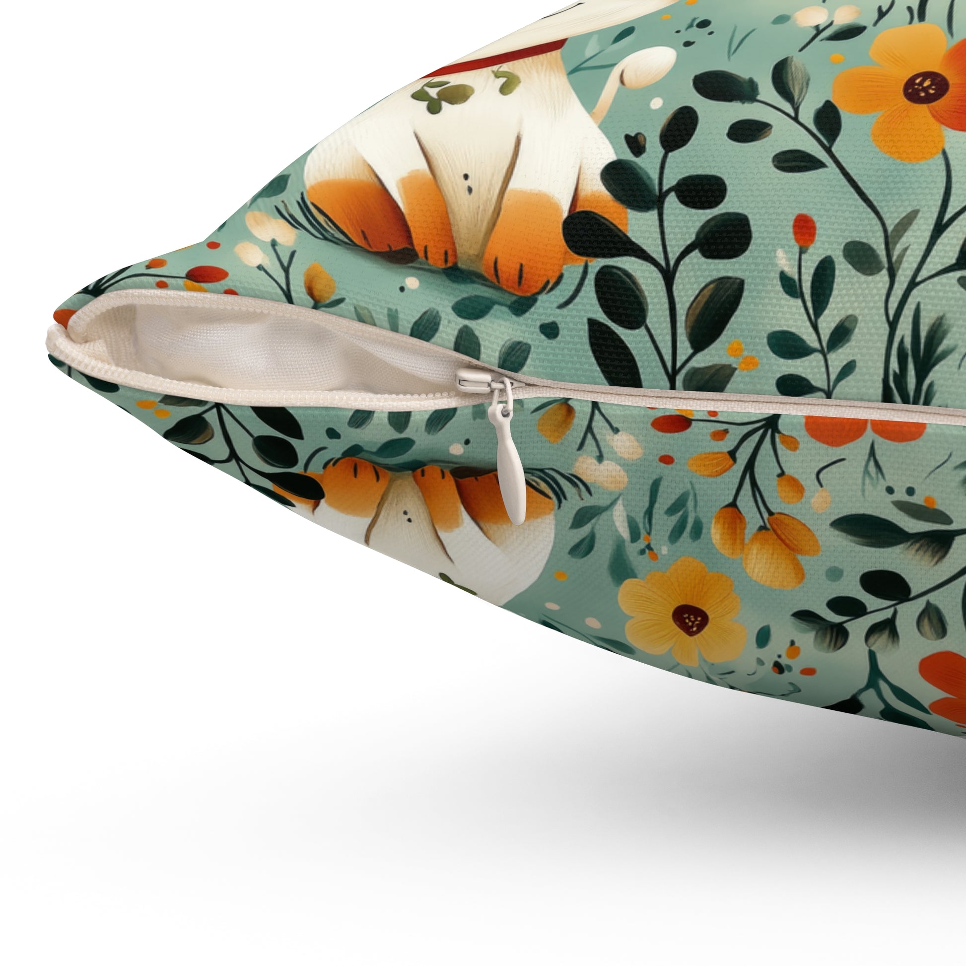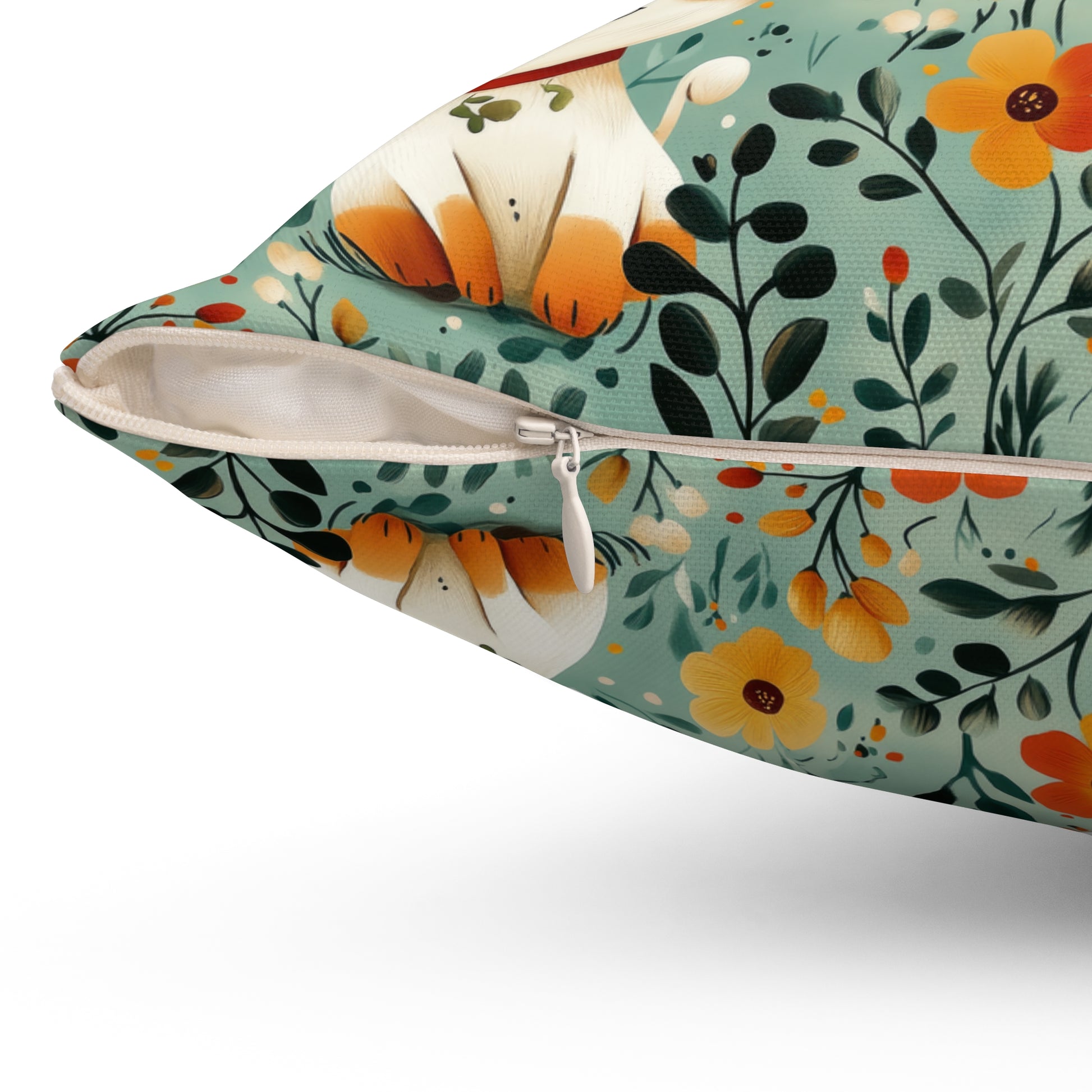 Introducing your new favorite home accessory: this delightful square pillow adds a charming touch to any living space. Featuring a whimsical design with playful dogs surrounded by colorful floral accents, this pillow radiates warmth and joy. It effortlessly complements a cozy, inviting atmosphere, making it perfect for your living room, bedroom, or sunroom. Ideal for dog lovers and anyone looking to infuse their home with a bit of fun and personality. This pillow is an excellent gift for pet owners and a great addition to home decor for holidays like Christmas, housewarming parties, or simply to brighten someone's day.