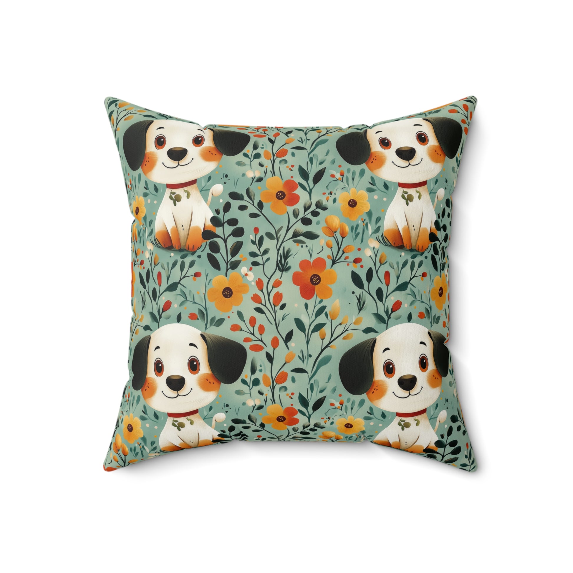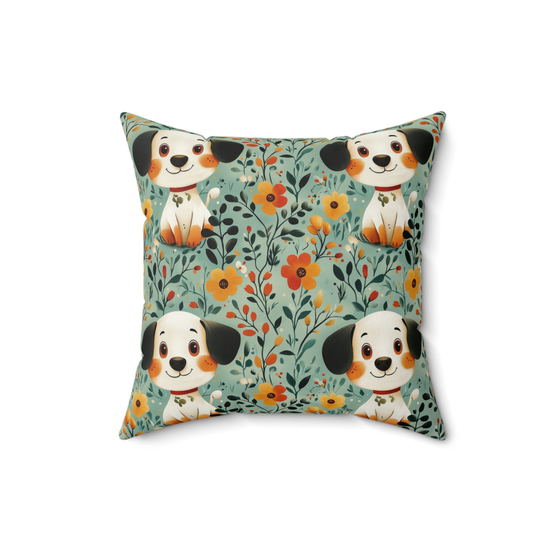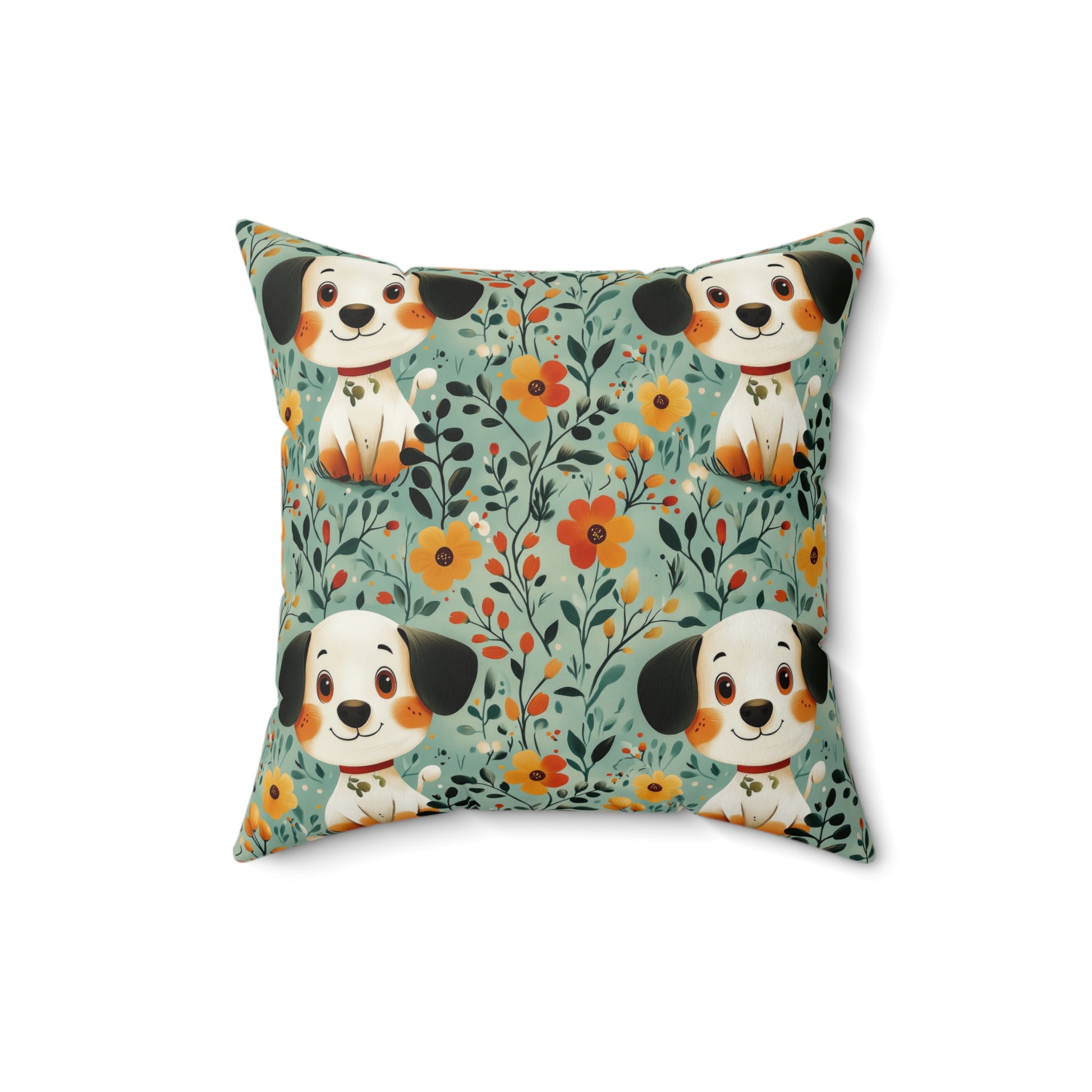 Adorable Dog Print Square Pillow, Cute Dog Decor, Pet Lover Gift, Floral Dog Cushion, Cozy Home Accent