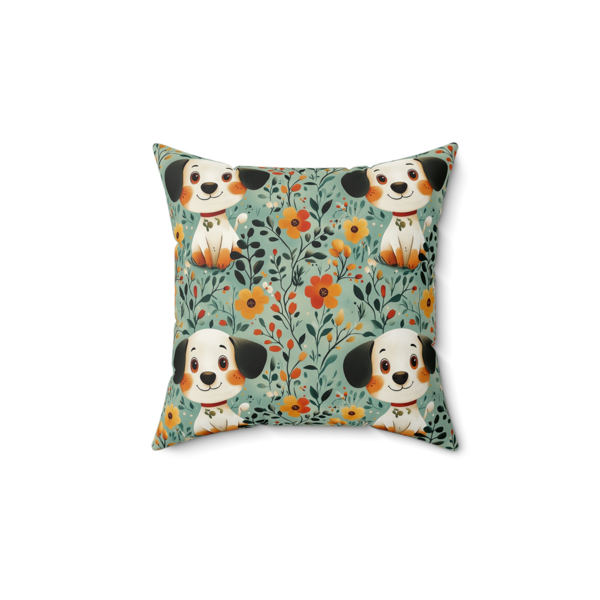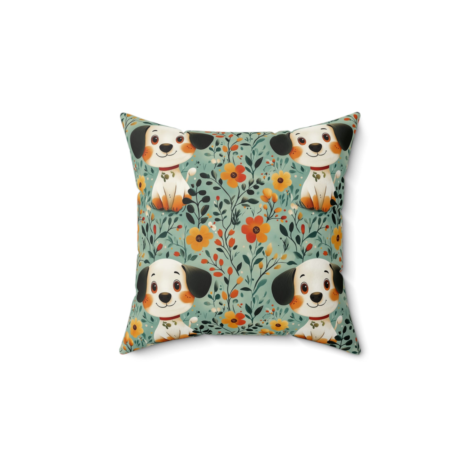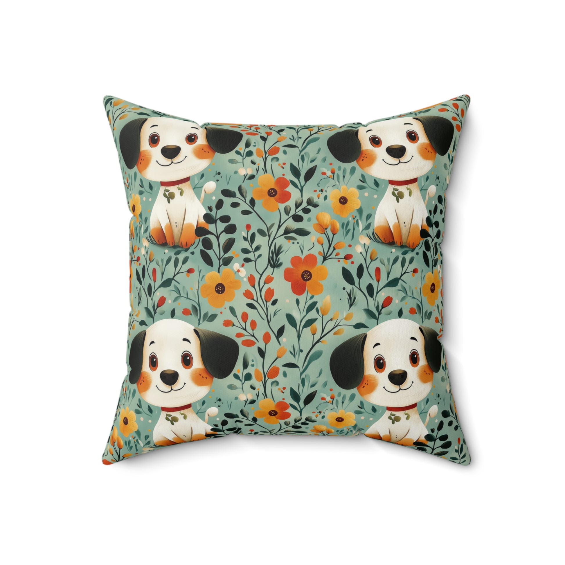 Adorable Dog Print Square Pillow, Cute Dog Decor, Pet Lover Gift, Floral Dog Cushion, Cozy Home Accent