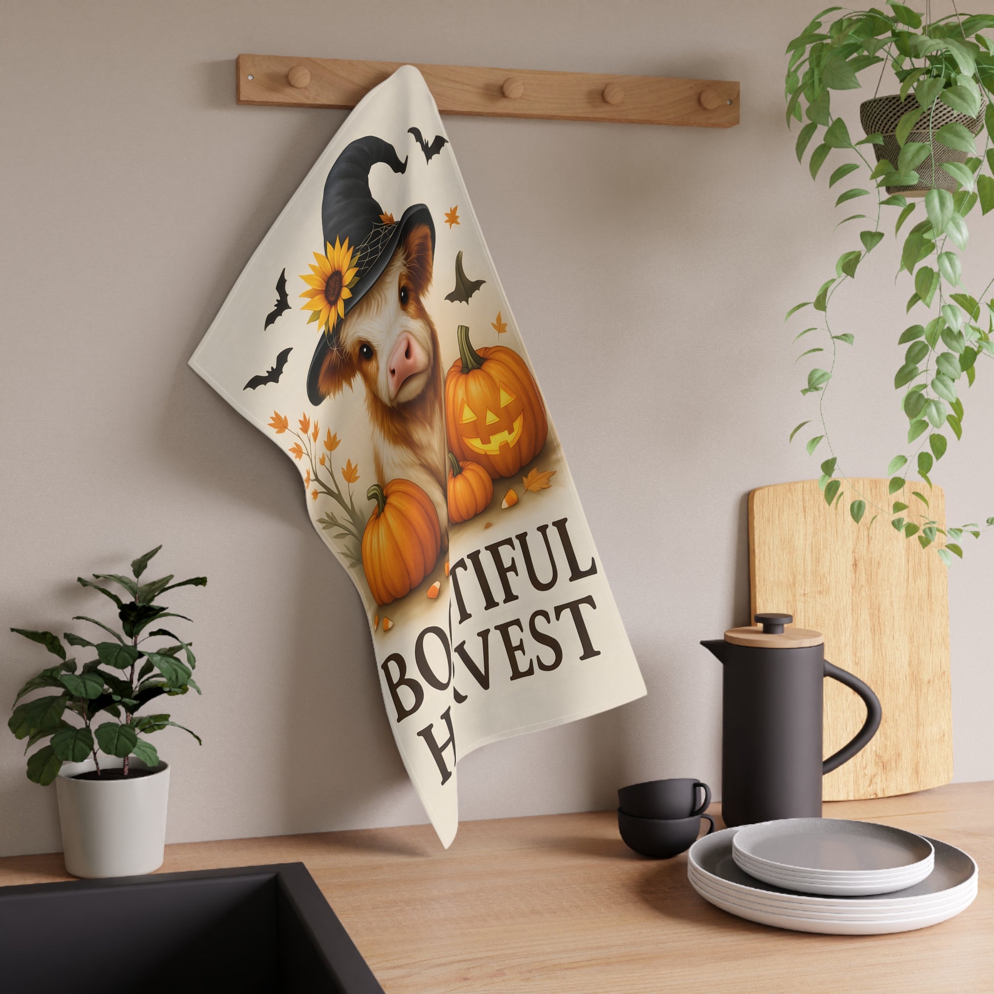 Autumn Farmhouse Tea Towels, Fall Kitchen Decor, Pumpkin & Cow Design, Rustic Home Gift, Halloween Kitchen Accessories