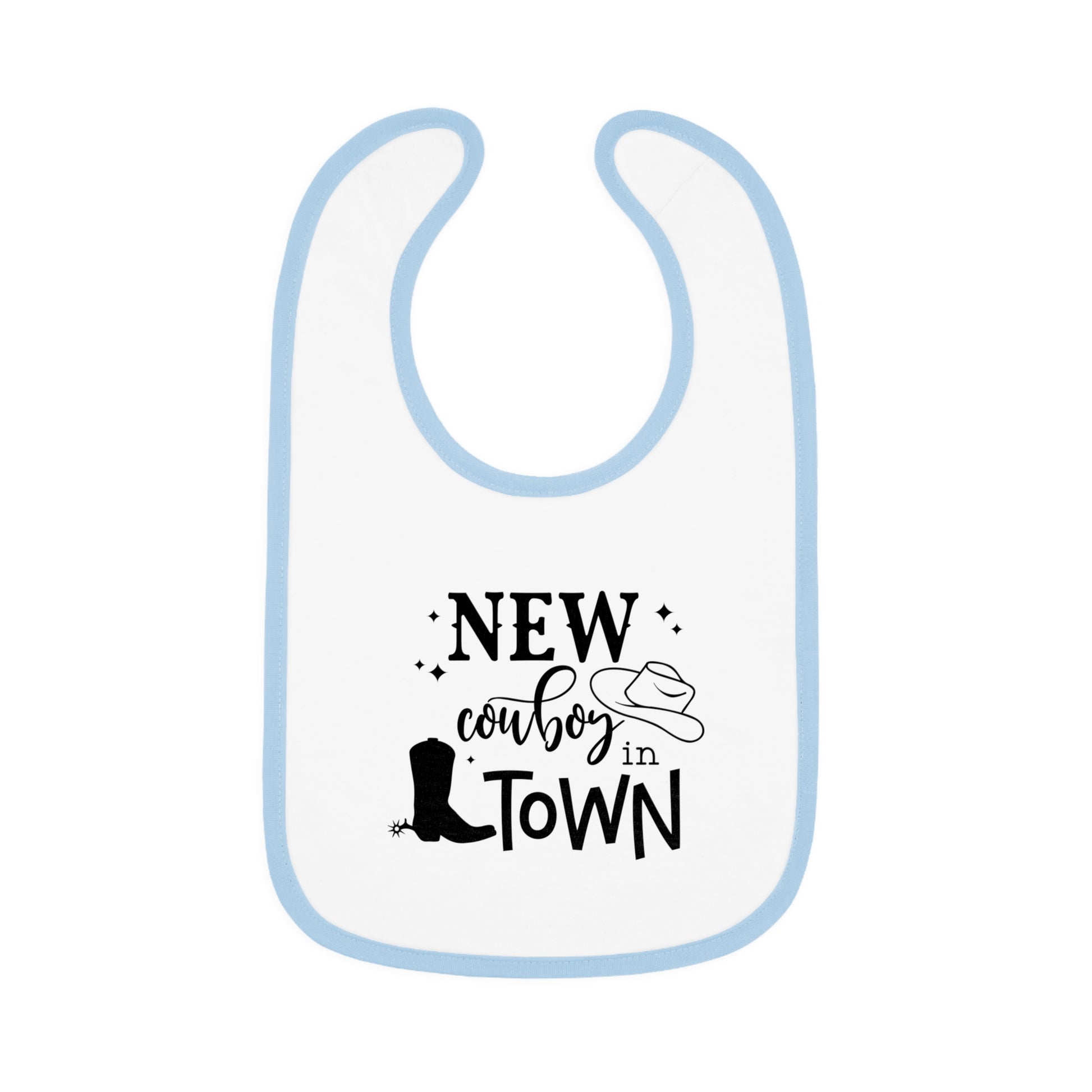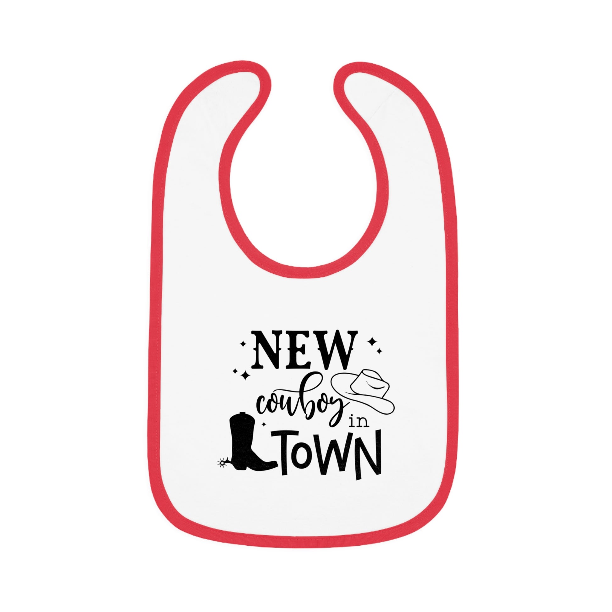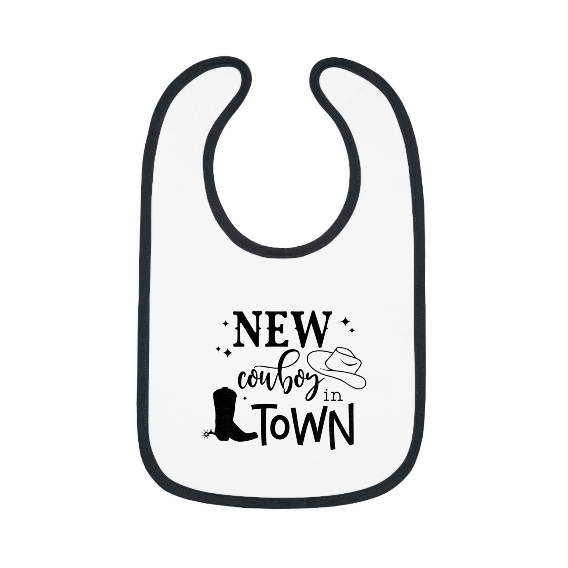 Introducing a charming Baby Bib, designed to bring a playful spirit to mealtime. This bib features a delightful "NEW cowboy in TOWN" design, perfect for little ones with a sense of adventure. Crafted from soft, 100% combed and ringspun cotton, it ensures comfort and durability for everyday use. The smooth fabric offers an excellent surface for vibrant prints, while the contrasting binding adds a stylish flair. Ideal for baby showers, birthdays, or any little cowboy or cowgirl’s special occasion, this bib makes mealtime fun and mess-free. A thoughtful gift for parents, grandparents, and anyone who cherishes precious moments with babies.
