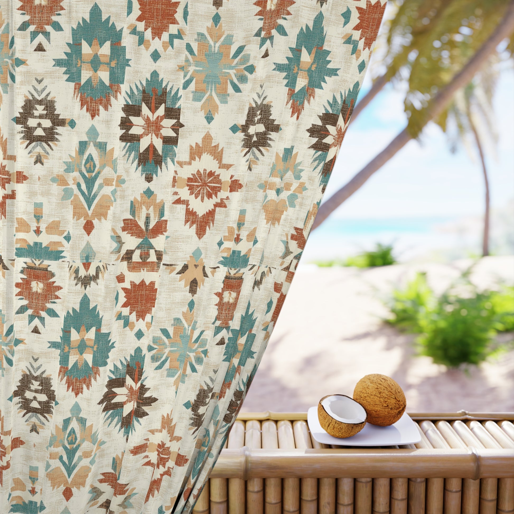 Boho Floral Window Curtains, Ethnic Patterned Curtains for Living Room, Bedroom, Home Décor, Bohemian Home Accessories