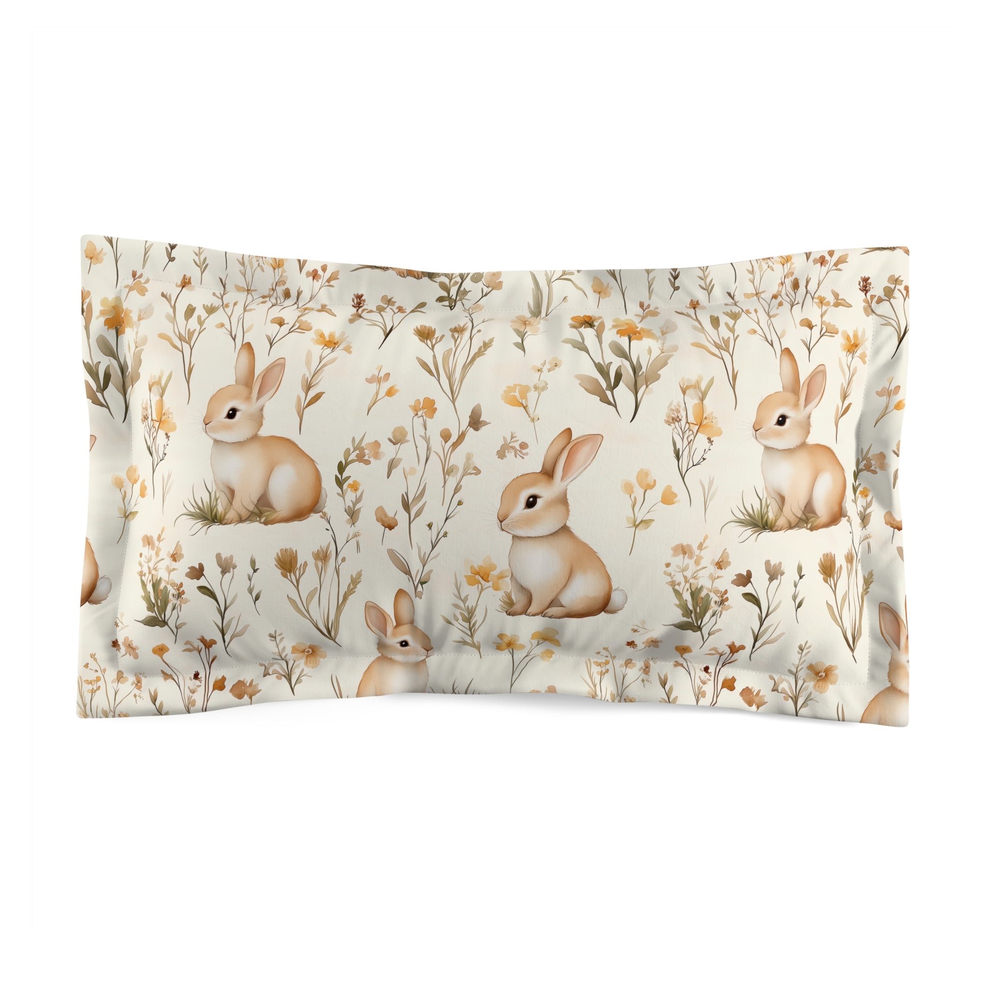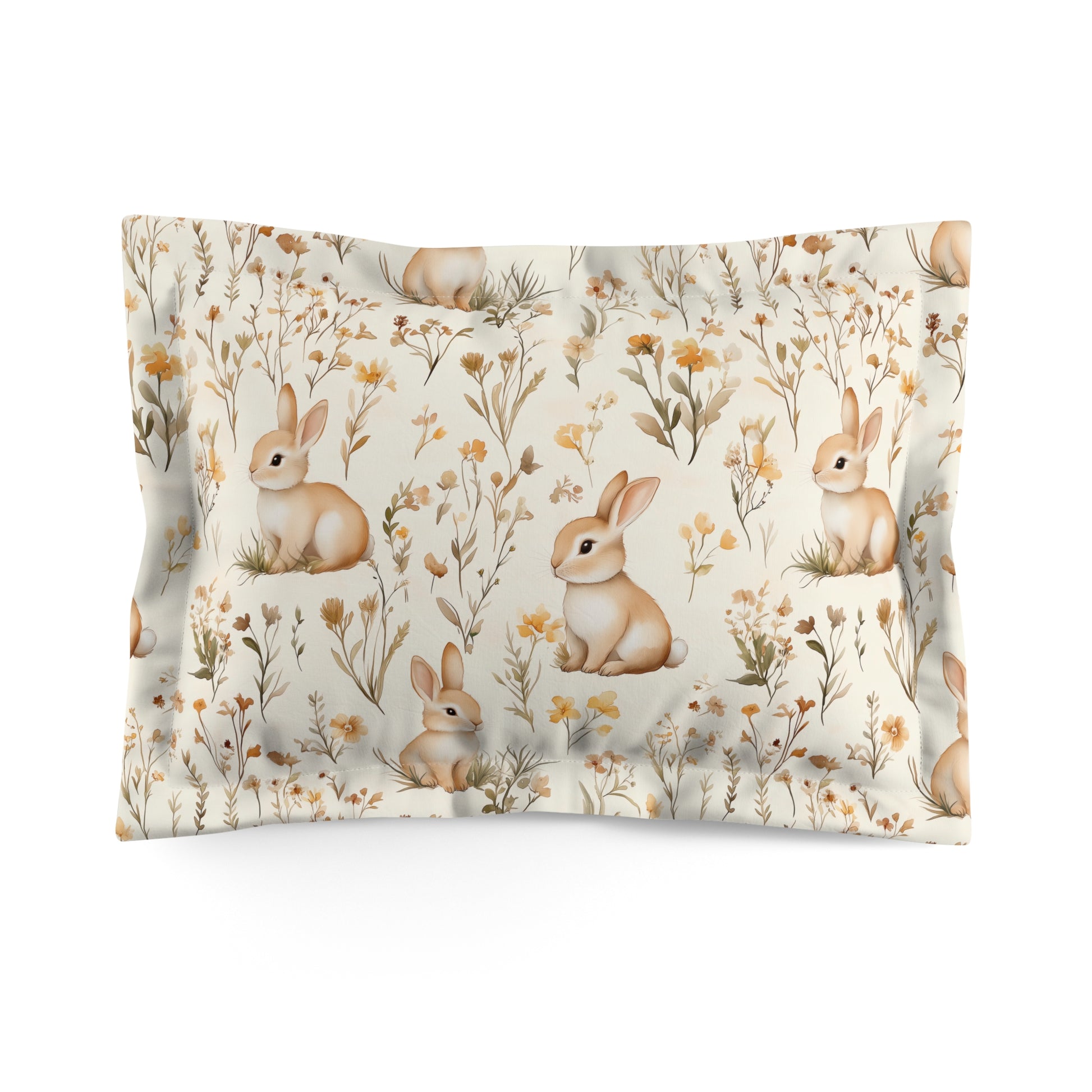 Bunny Floral Microfiber Pillow Sham, Cute Bedroom Decor, Rabbit Print Sham, Easter Gift, Cozy Home Accent, Kid's Room Bedding