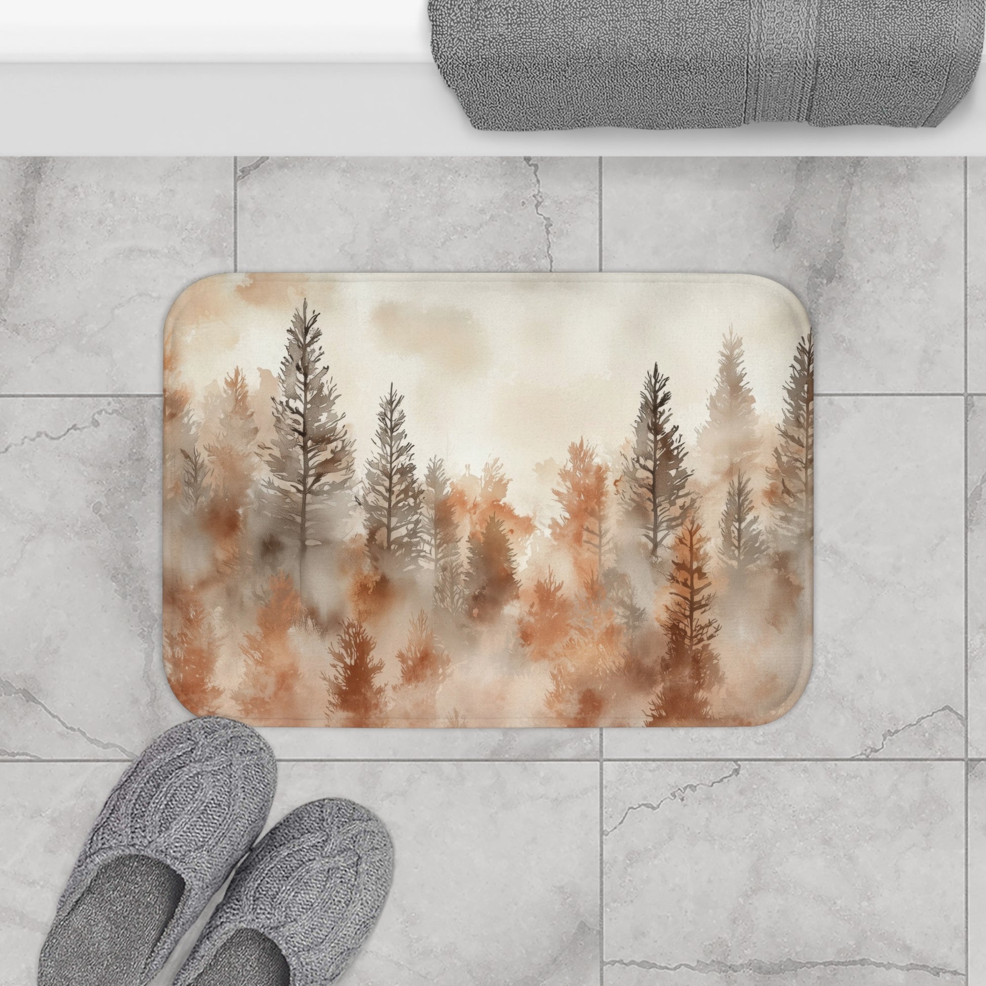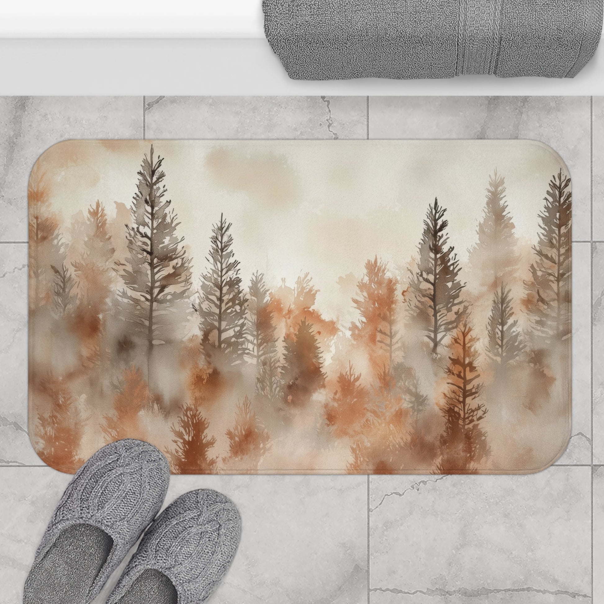 Cozy Autumn Forest Bath Mat, Farmhouse Decor, Bathroom Accessories, Nature-inspired Rug, Rustic Home Gift