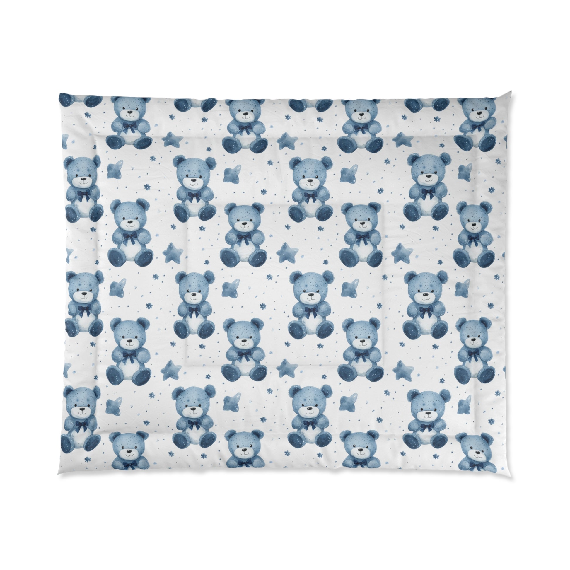 Cozy Bear Comforter - Soft Blue Teddy Bear Bedding, Kids Room Decor, Nursery Essentials, Seasonal Gift, Cute Bedroom Accessory