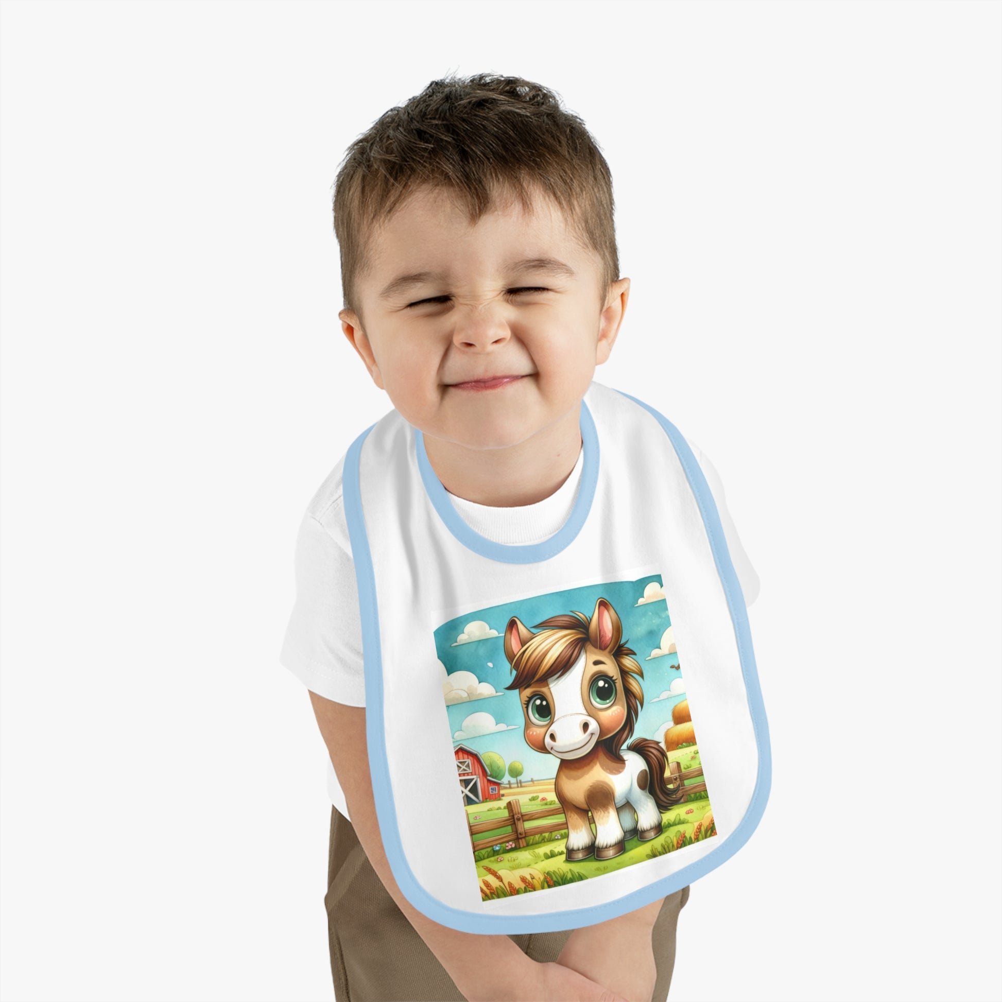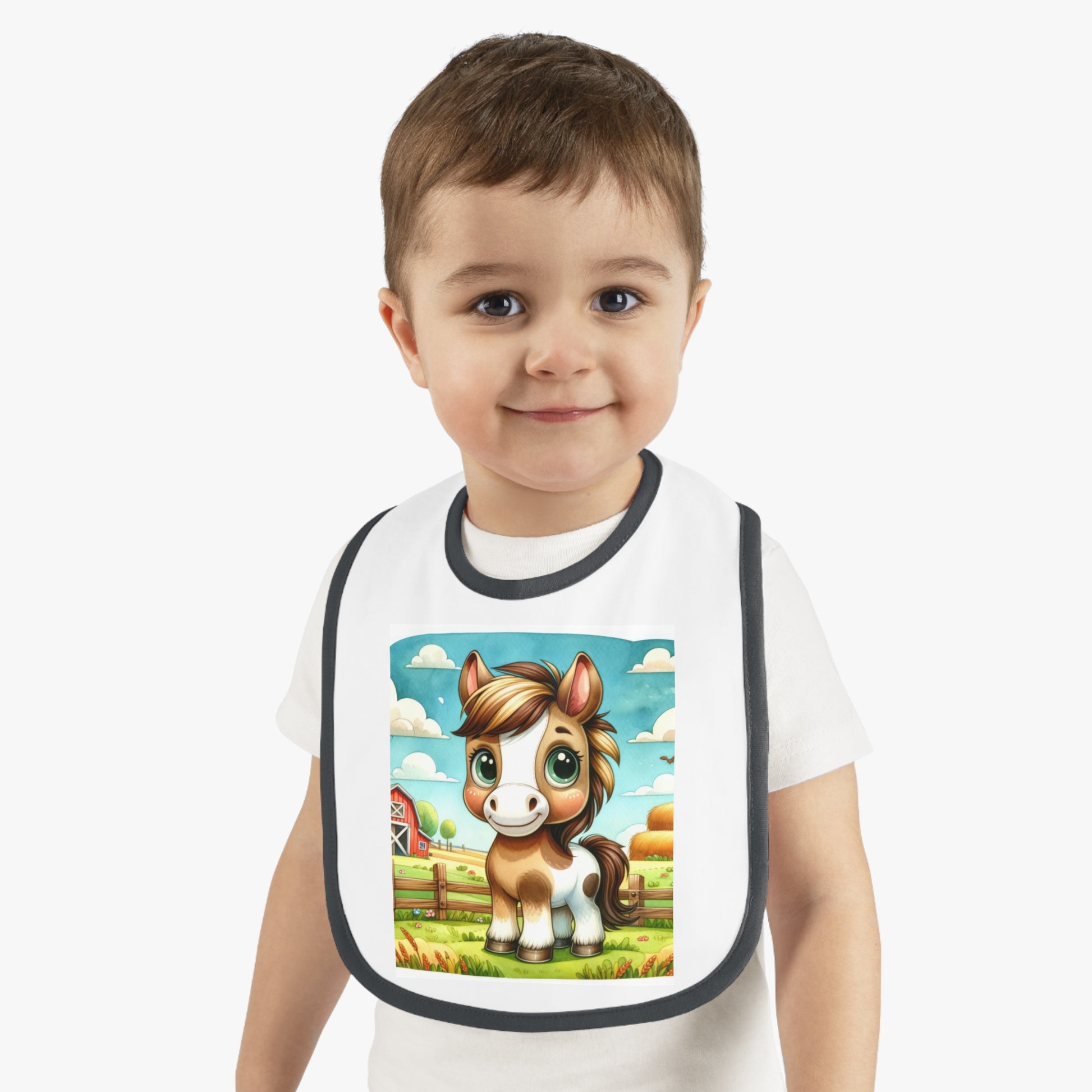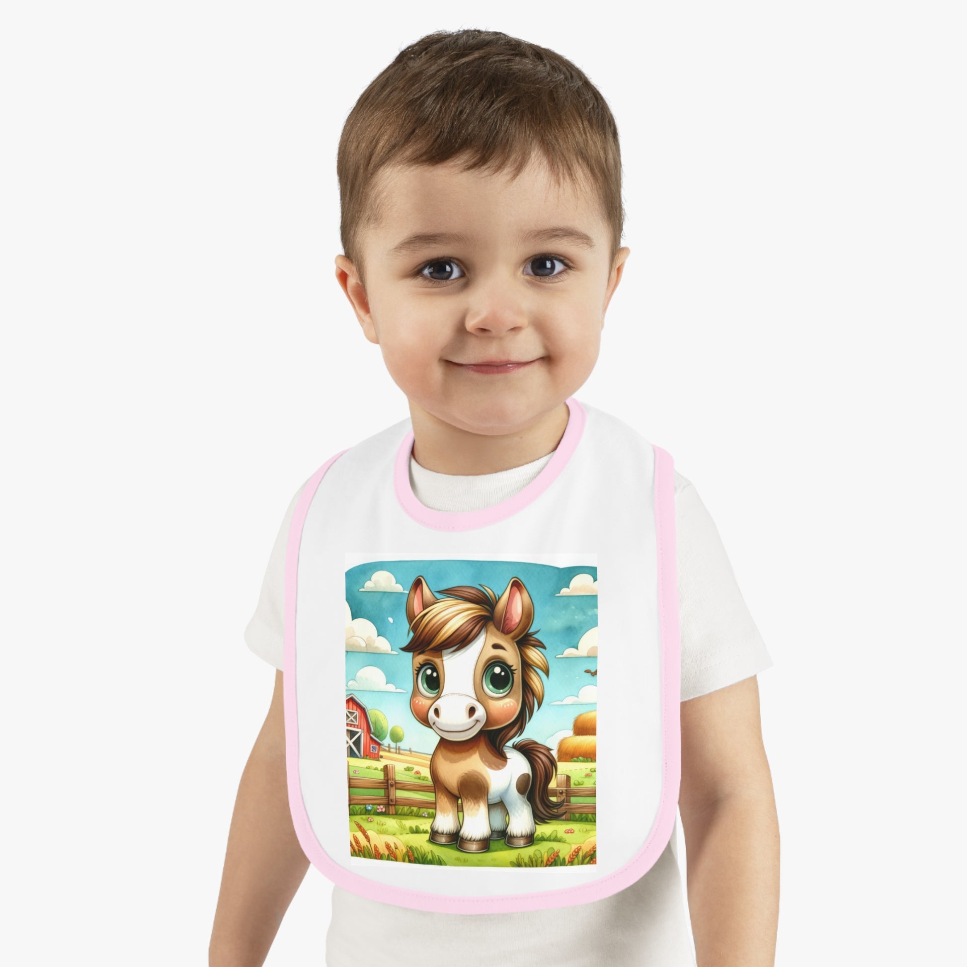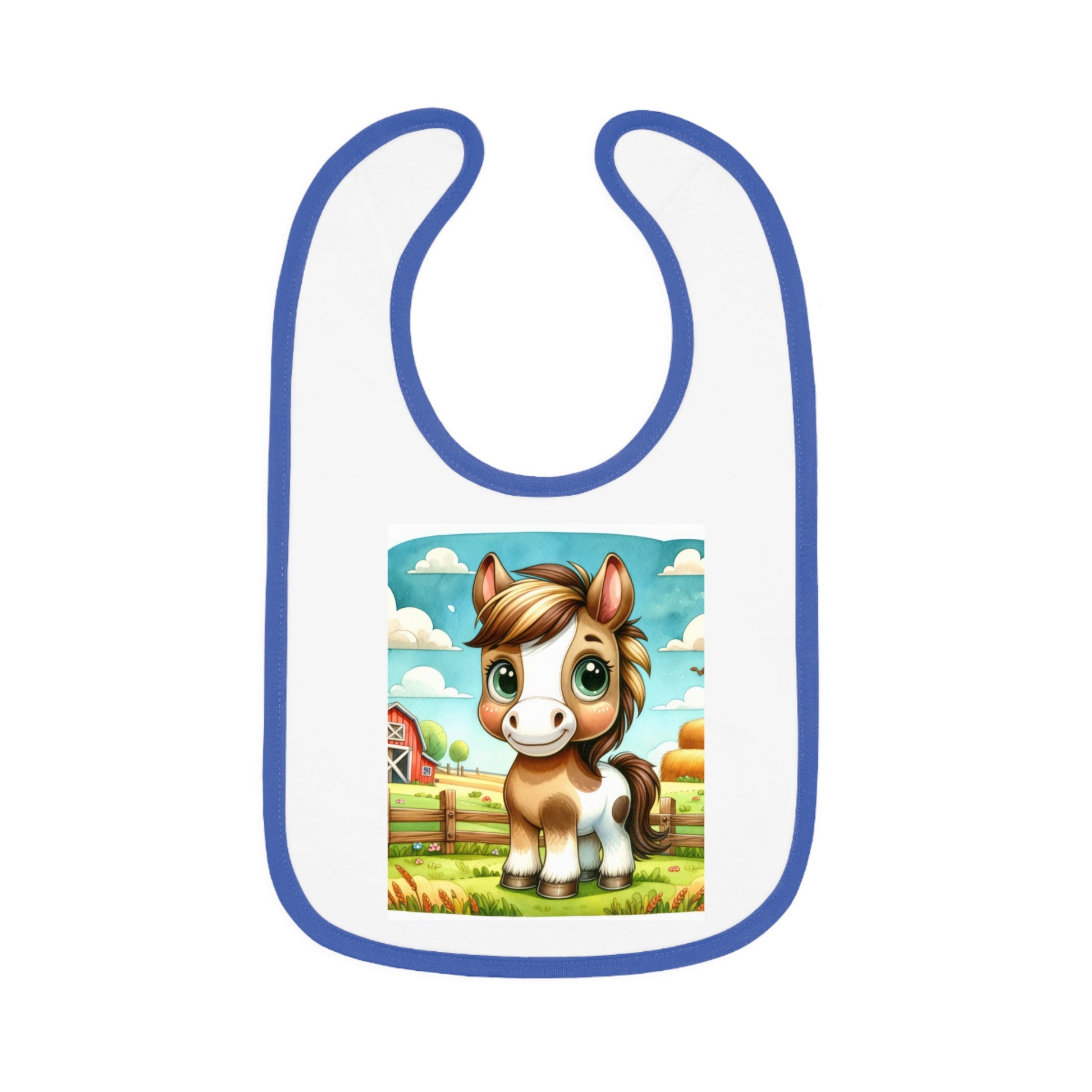 Cute Cartoon Horse Baby Bib, Adjustable Jersey Bib, Farm Animal Feeding Bib, Infant Bib, Baby Shower Gift, Toddler Bib