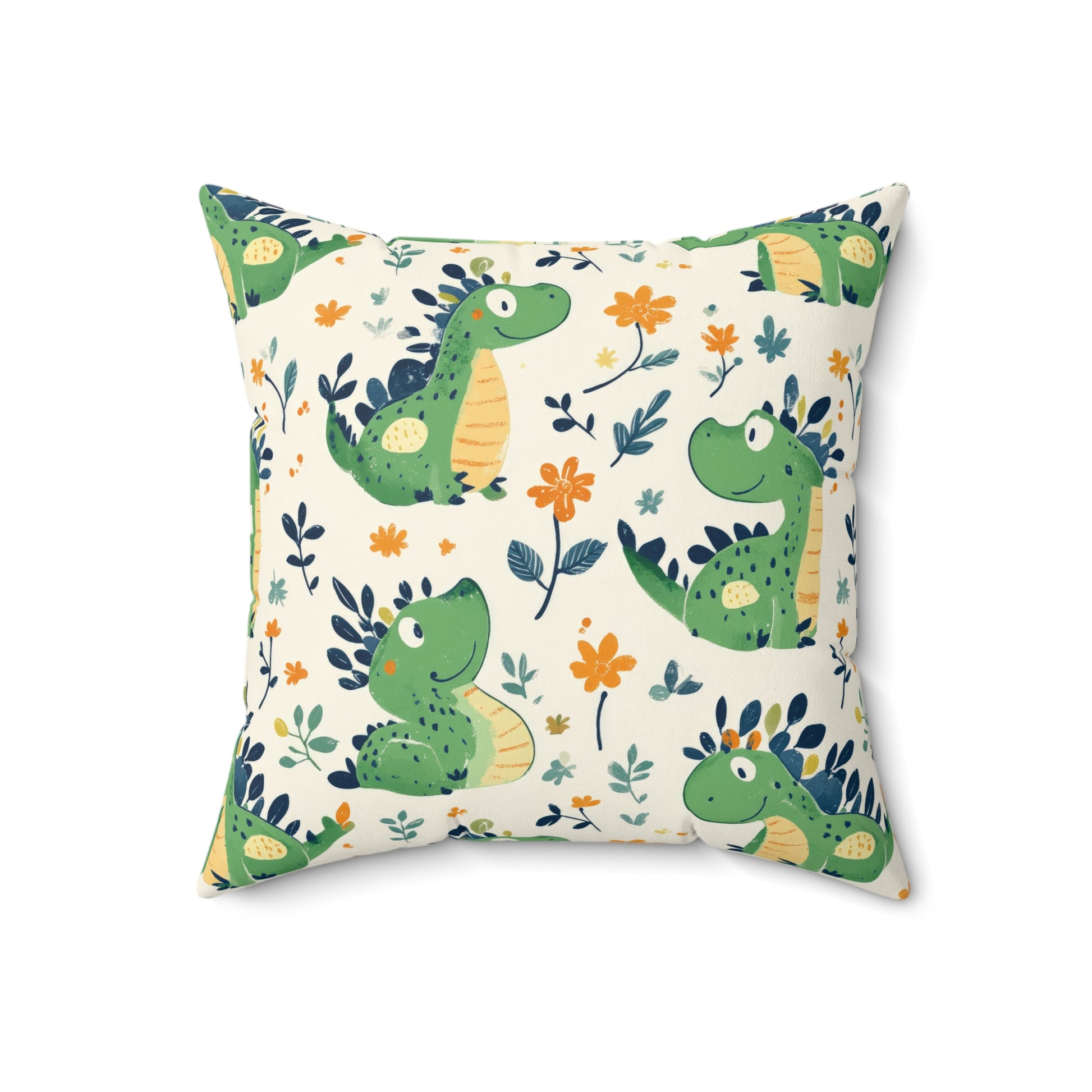 Add a touch of whimsy to your living space with this vibrant Spun Polyester Square Pillow. Featuring adorable dinosaur designs surrounded by cheerful florals, this pillow creates a playful atmosphere that’s perfect for nurseries, playrooms, or any family space. Its soft and durable fabric ensures comfort, making it an ideal companion for cozy reading sessions or family movie nights. With its fun theme, this pillow is not only great for kids but also for dinosaur enthusiasts of all ages. It’s a fantastic gift for birthdays, baby showers, and holidays like Christmas or Halloween, bringing joy and charm to any occasion.