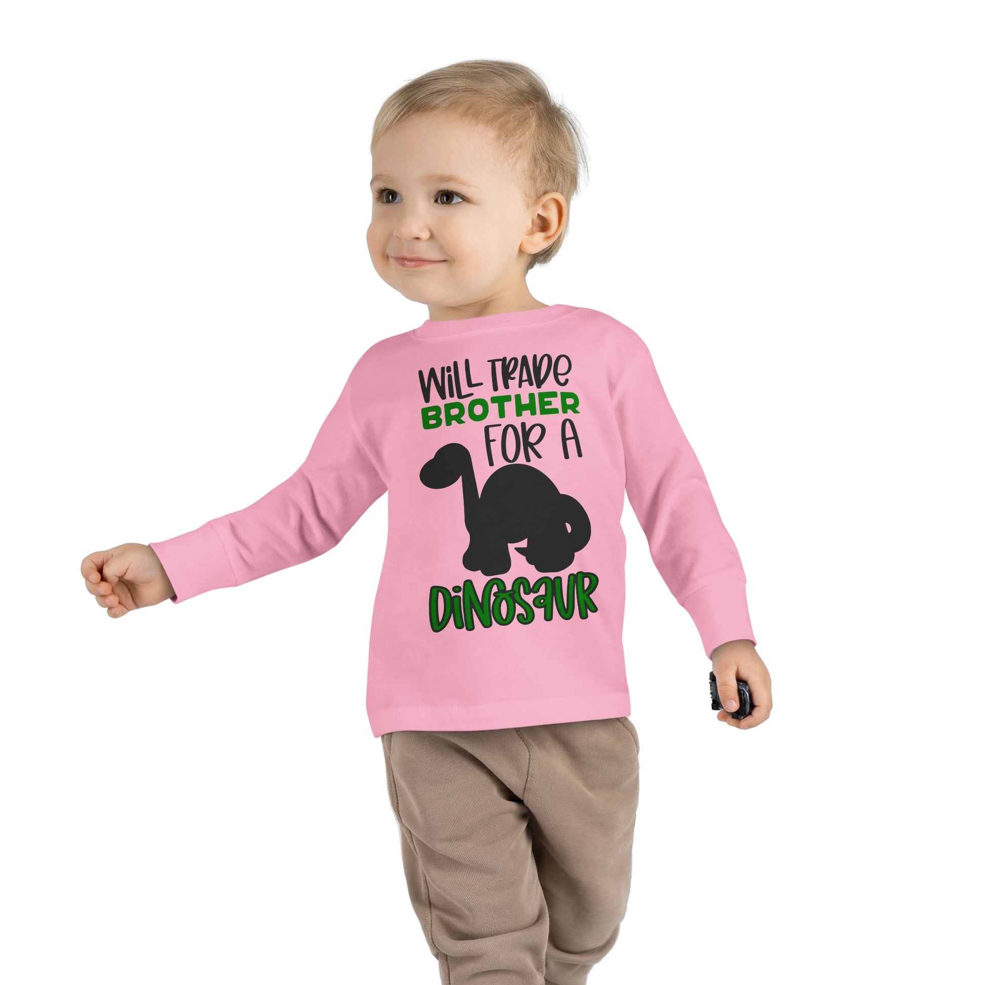Dinosaur-Themed Toddler Long Sleeve Tee - 'Will Trade Brother for a Dinosaur', Cute Kids' Apparel, Birthday Gift, Toddler Fashion, [...]