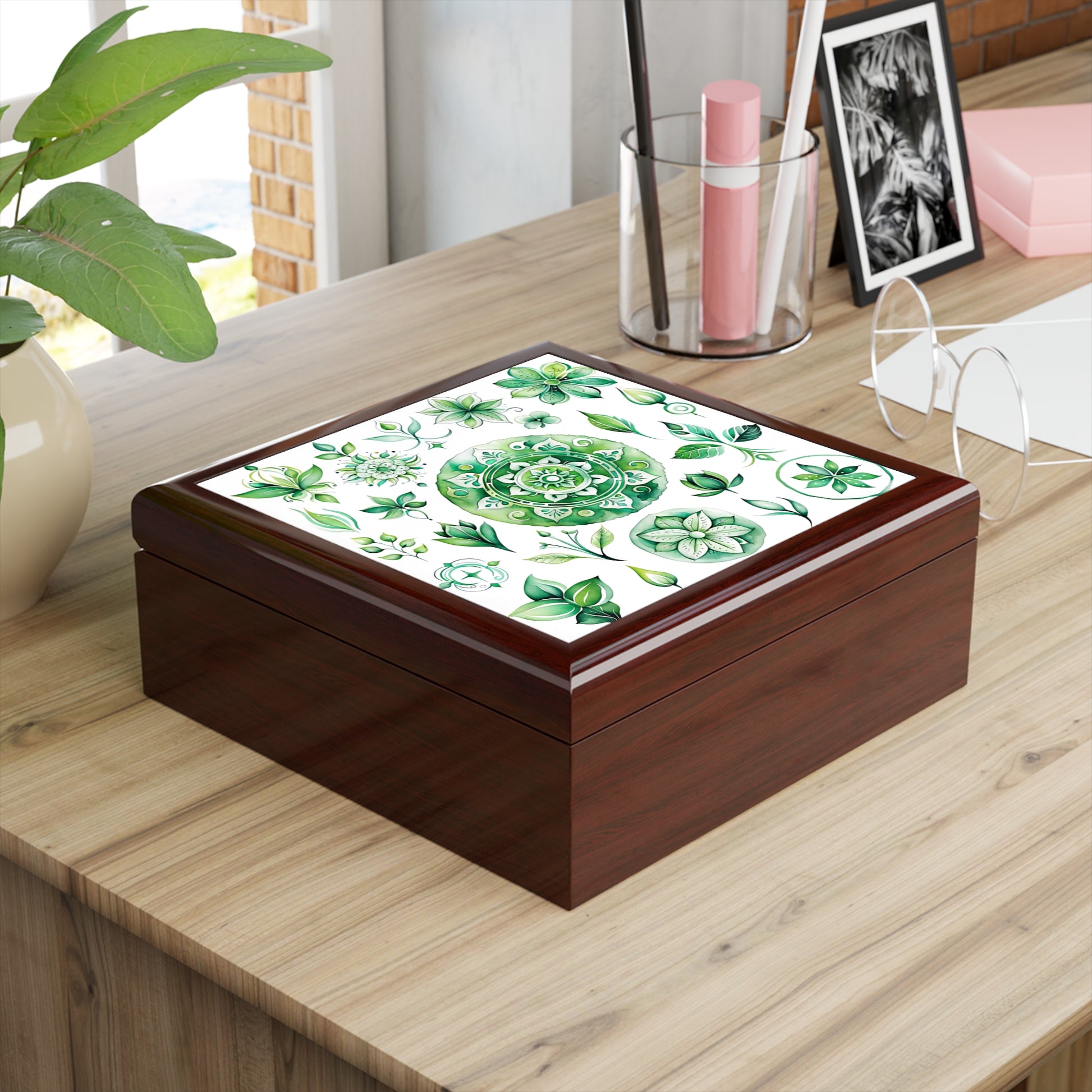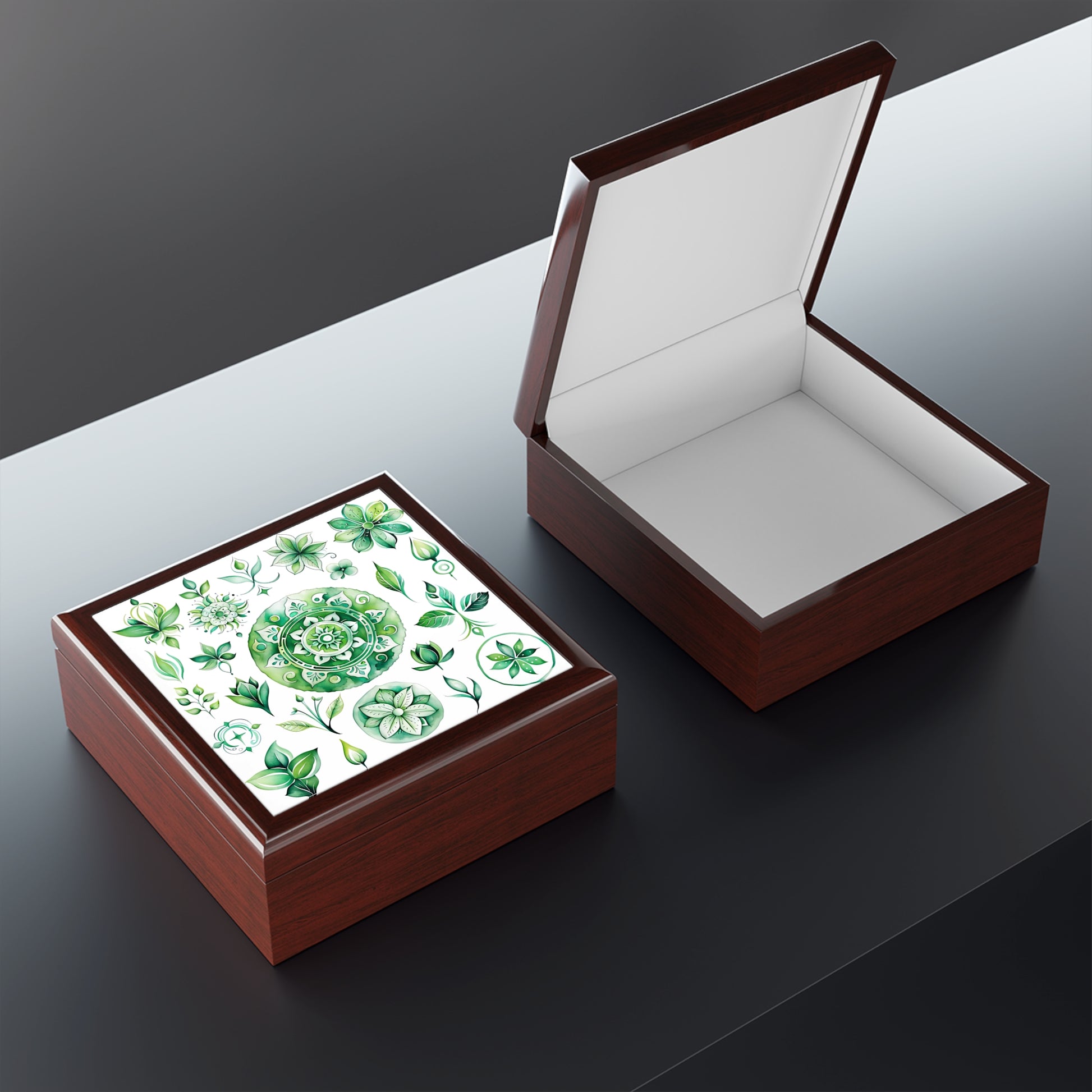 Elegant Floral Jewelry Box | Decorative Storage for Rings, Earrings, Gifts, Home Decor, Green Botanical Theme