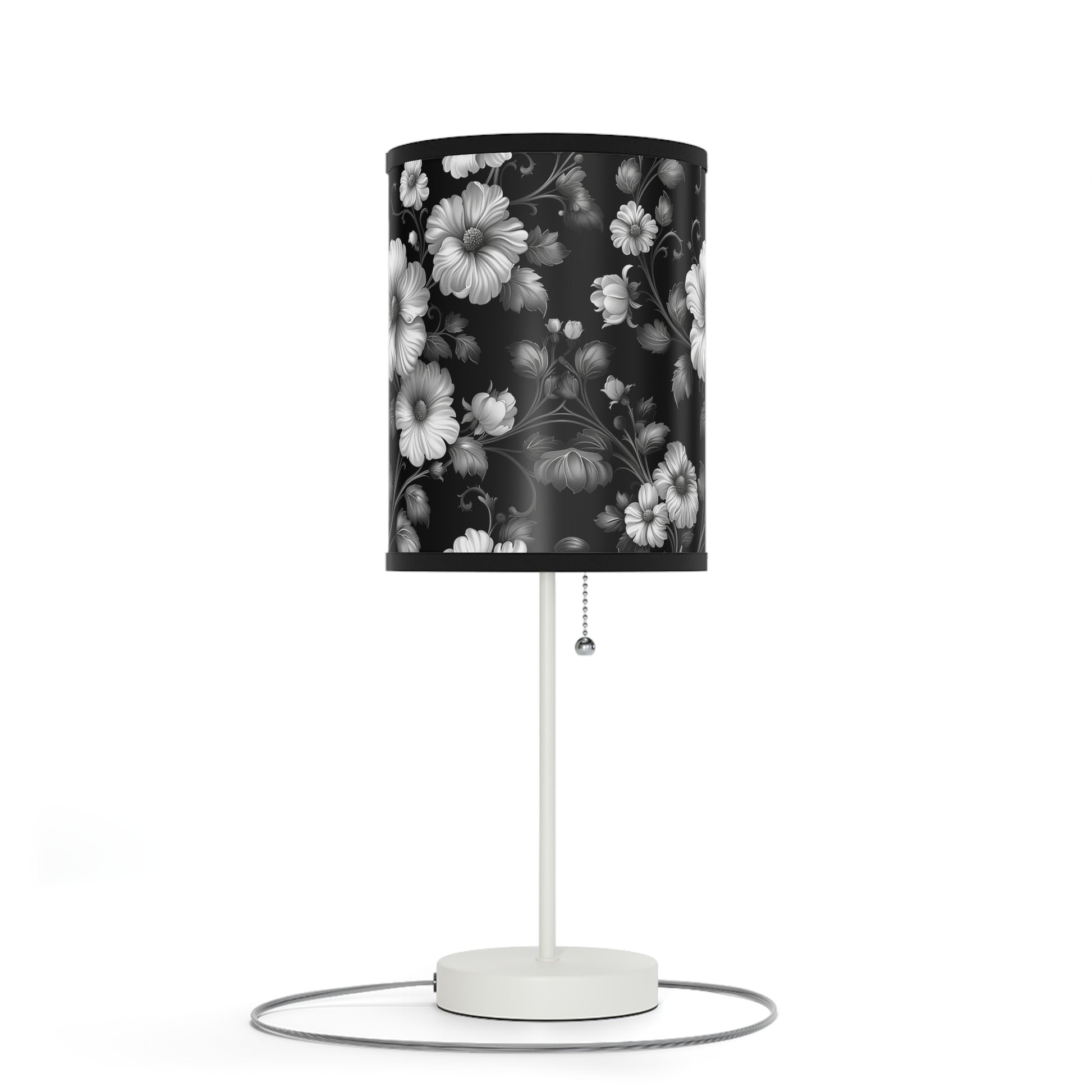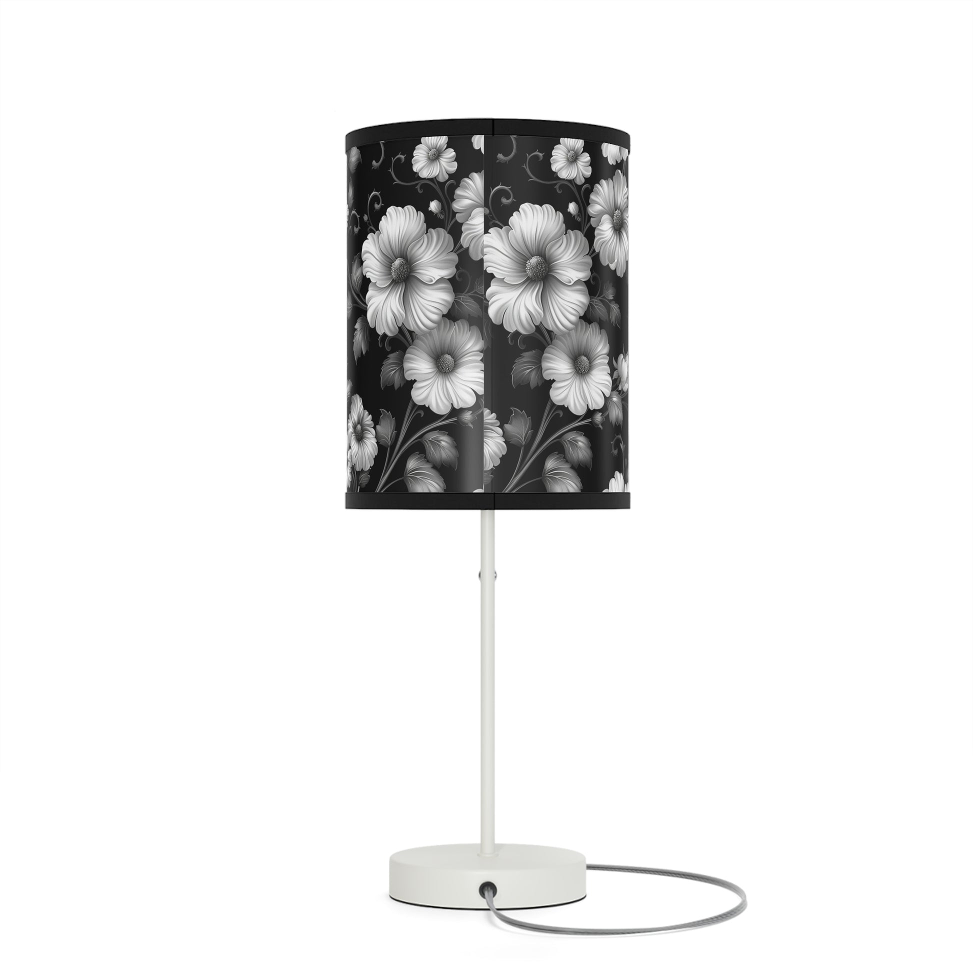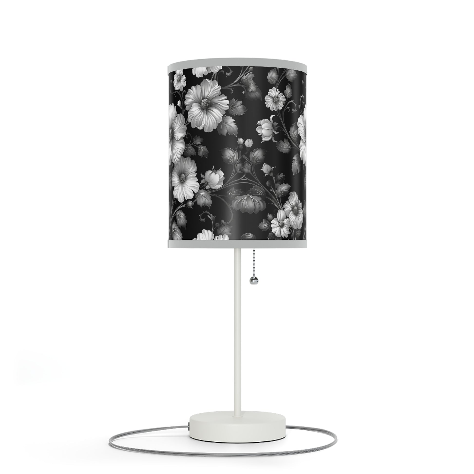 Elegant Floral Table Lamp, Modern Home Decor, Bedroom Lighting, Living Room Accent, Gift for Her, Black and White Style