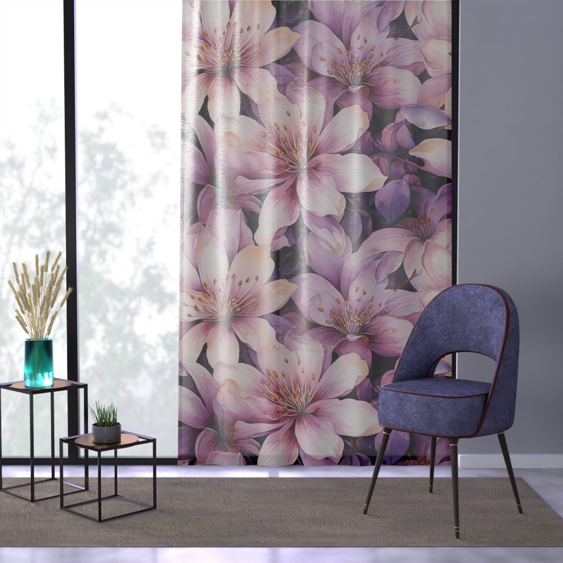 Elegant Floral Window Curtain, Soft Purple Floral Drapes, Living Room Decor, Bedroom Curtains, Spring/Summer Home Accessories