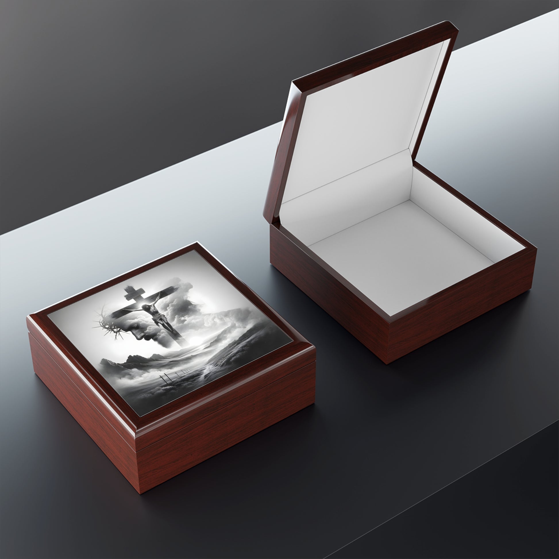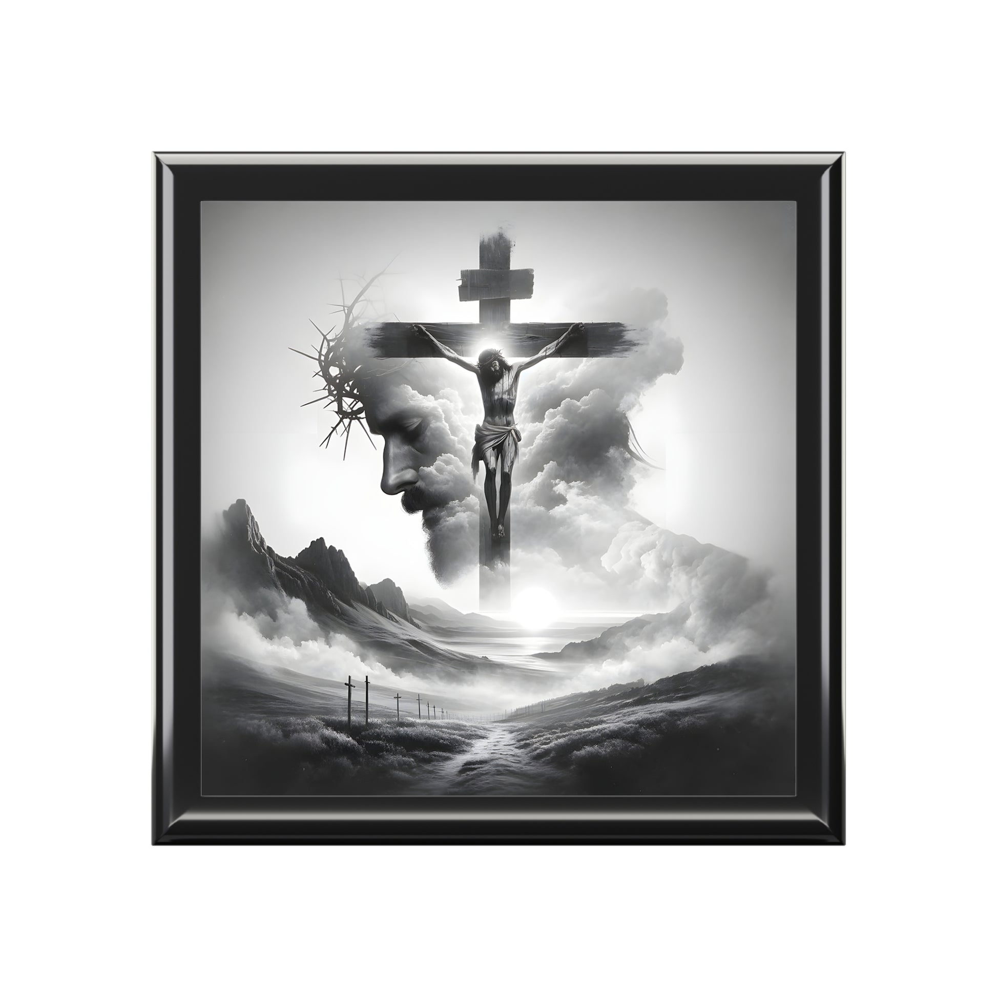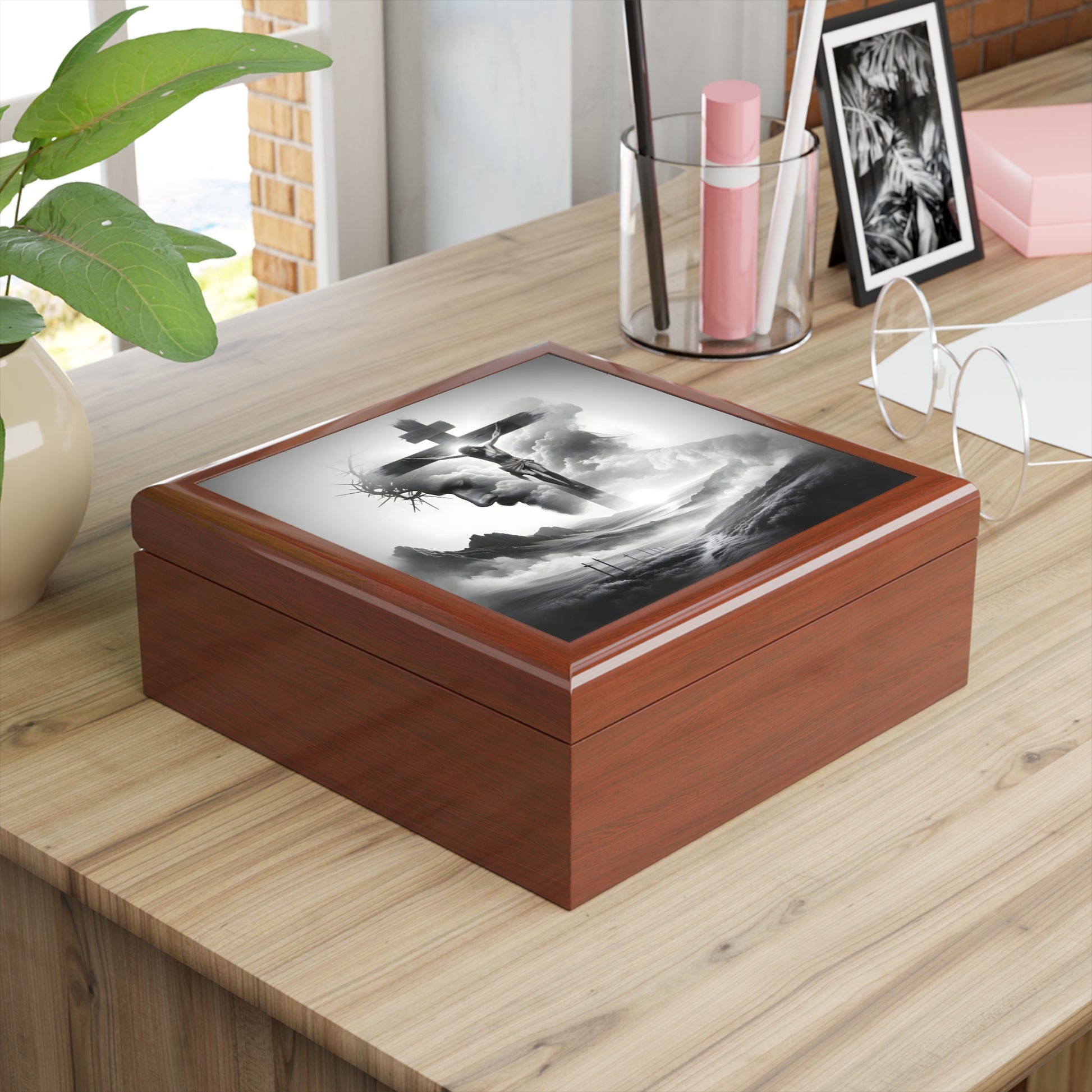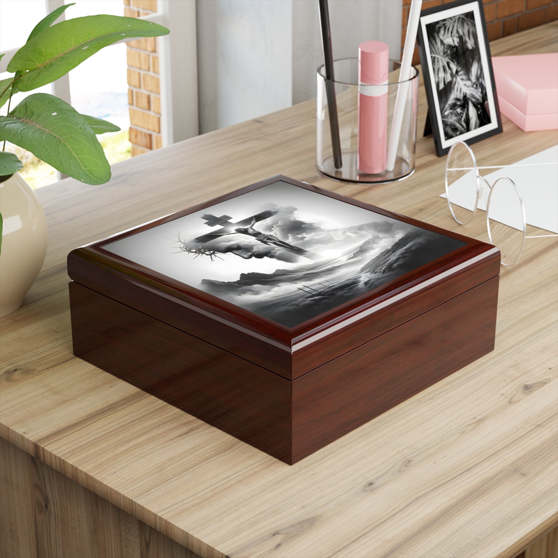 Enhance your space with this elegant jewelry box, perfect for storing precious treasures and keeping your surroundings organized. The sleek black design, adorned with a beautiful glossy ceramic tile featuring a striking artistic image, adds a touch of sophistication to any room. This jewelry box is not only functional but also serves as a work of art that inspires calm and contemplation. Ideal for anyone who appreciates fine craftsmanship and elegant design, it’s a thoughtful gift for loved ones during special occasions like anniversaries, weddings, or holidays like Christmas and Easter. Its soft felt interior ensures your jewelry remains scratch-free and beautifully displayed.
