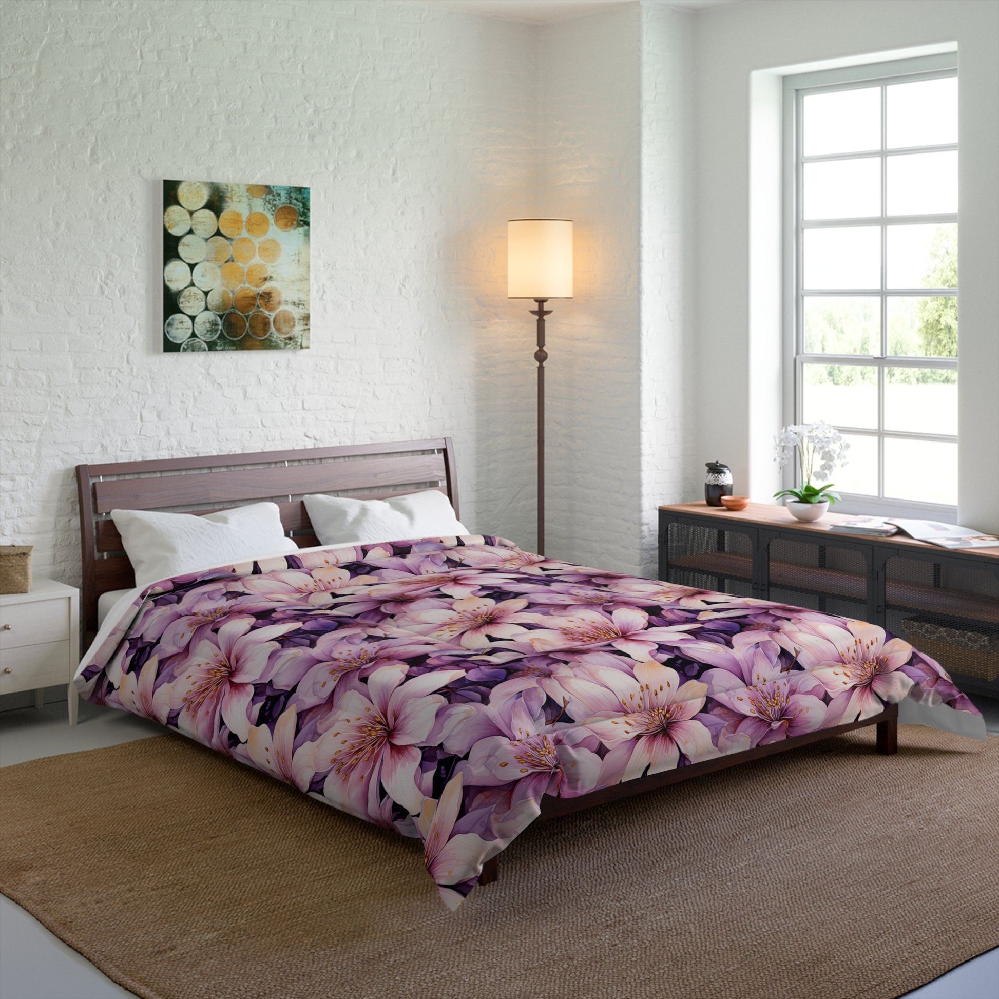 Floral Comforter - Cozy Blanket for Home Decor, Bedspread, Gift for Her, Spring Floral Bedding, Lightweight Quilt