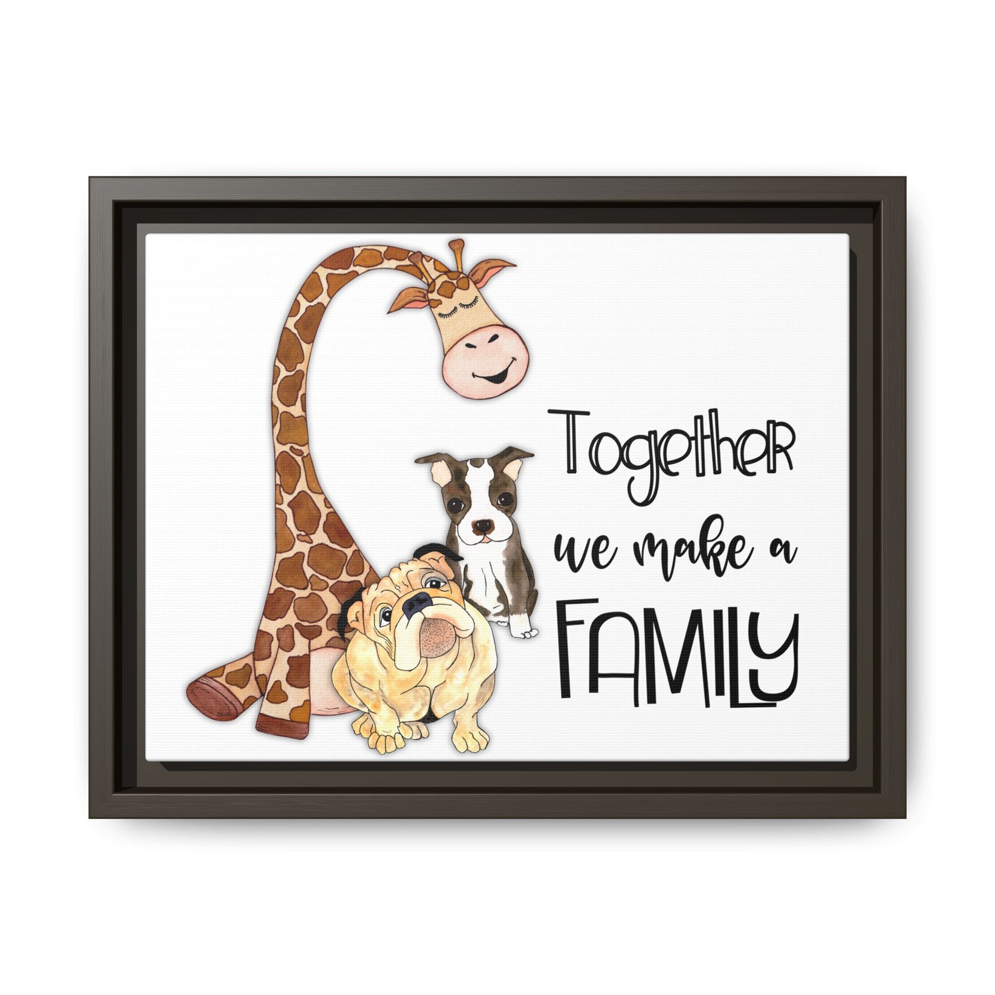 Framed Canvas Art: "Together We Make a Family" with Pets, Home Decor, Family Gift, Animal Lover Wall Art, Birthday Gift