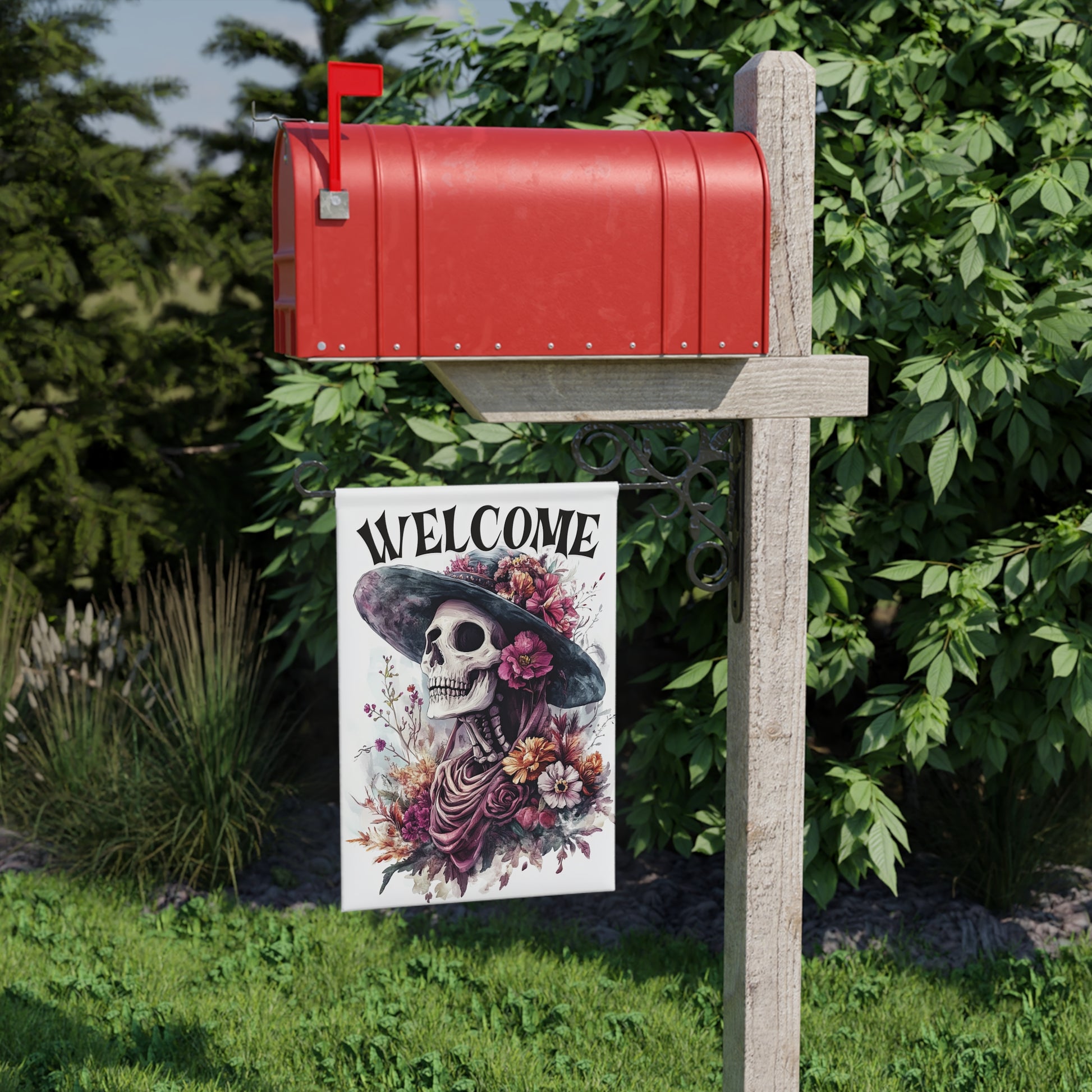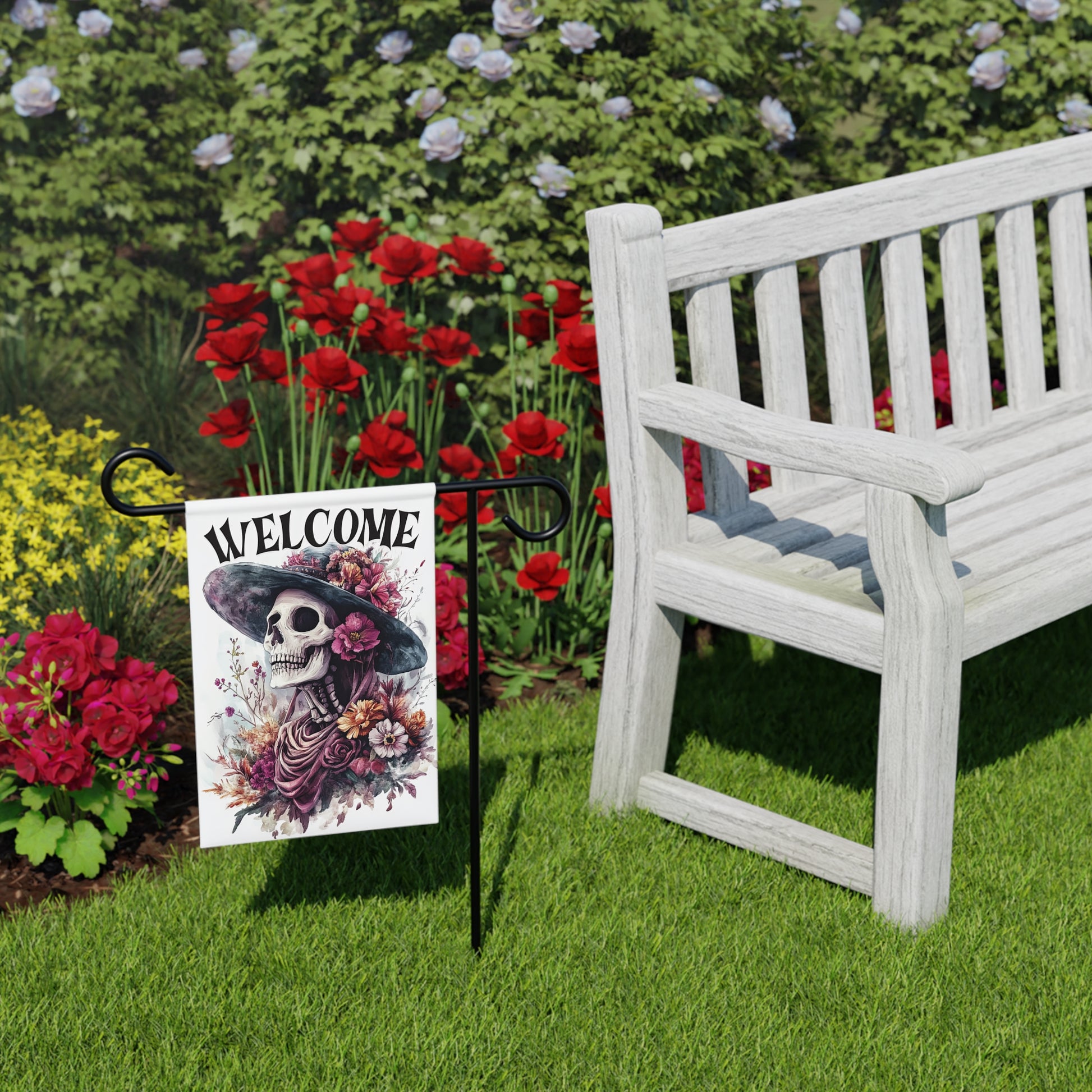 Enhance your outdoor space with this stunning garden banner that radiates charm and personality. Designed to welcome guests with a beautiful floral skull motif, it adds a unique touch to your garden, patio, or home entrance. Made from durable and vibrant materials, this banner is perfect for garden lovers and those who appreciate standout decorations. Ideal for festive occasions like Halloween, Day of the Dead celebrations, or simply to brighten up your everyday life, this garden banner complements any seasonal decor with its vibrant colors and intricate design. Let it serve as a warm greeting throughout the year!