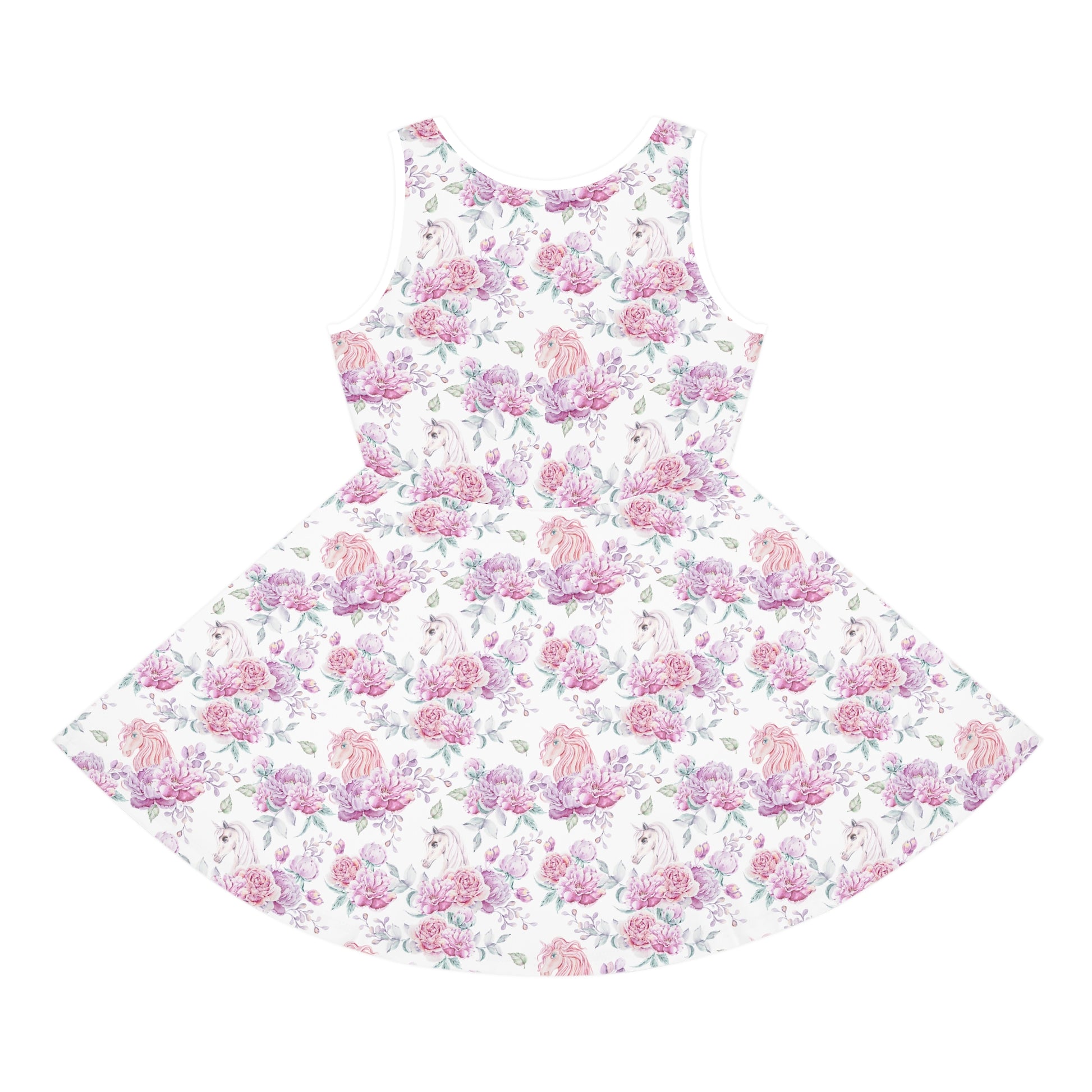 Girls' Pink Floral Unicorn Sleeveless Sundress