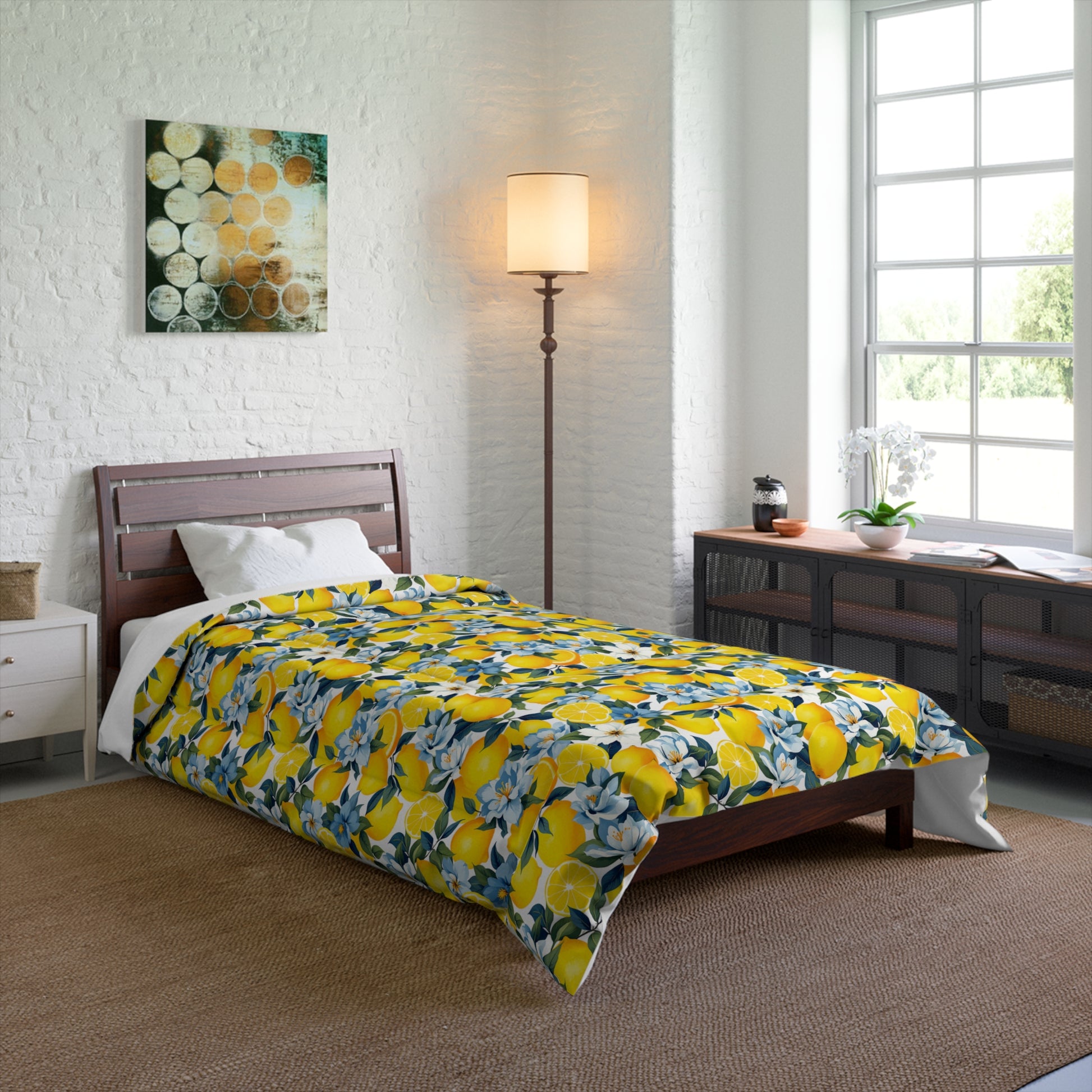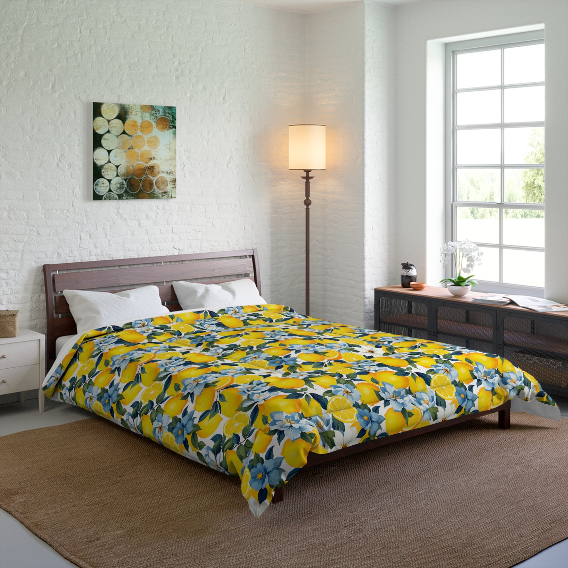 Lemon Blossom Comforter - Bright Citrus Bedding Set for Modern Bedrooms, Cozy Home Decor, Summer Vibes, Gift Idea