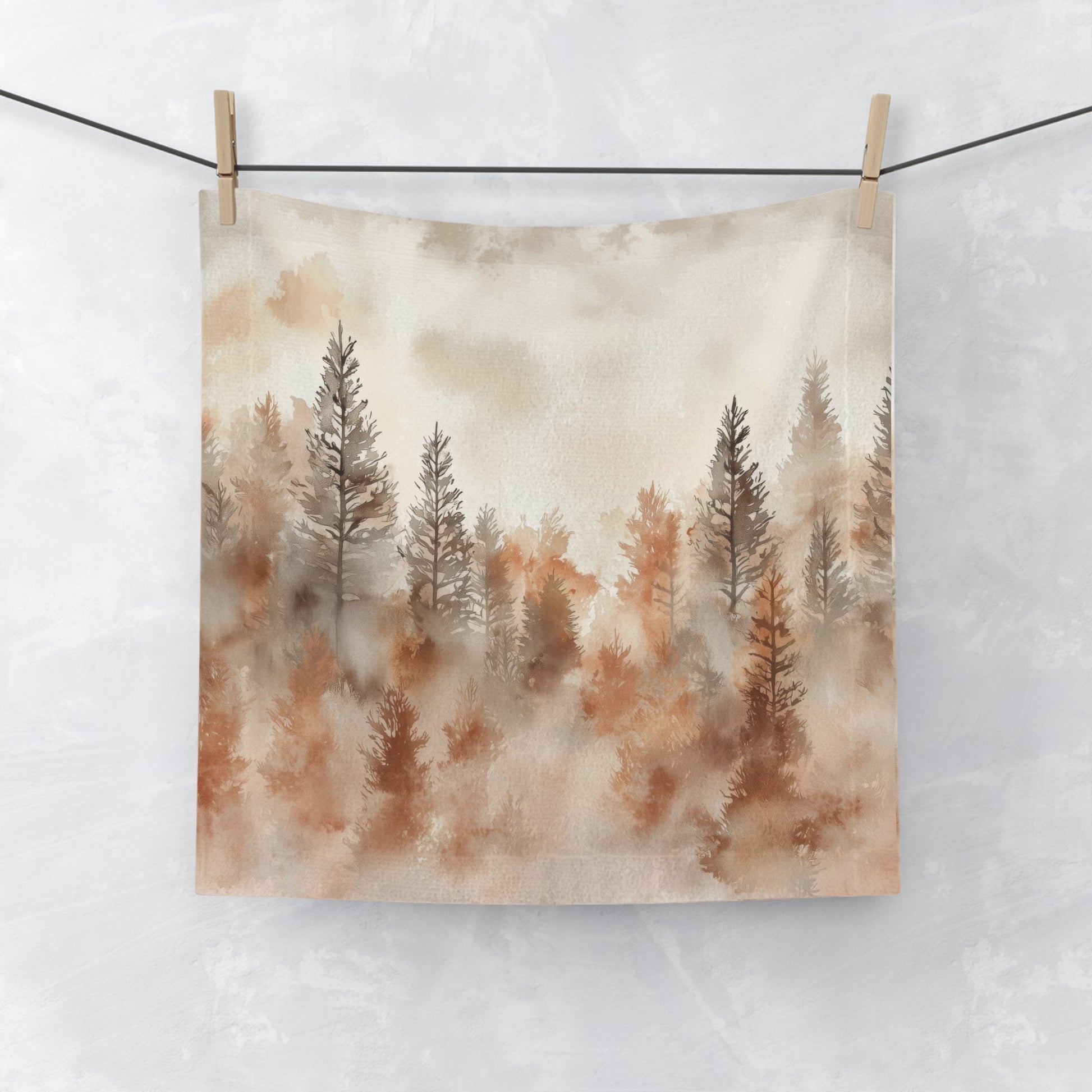 Rustic Forest Print Face Towel, Nature Lover Gift, Bathroom Decor, Cozy Home Accessory, Eco-Friendly Face Towel, Towels for Spa or Grooming