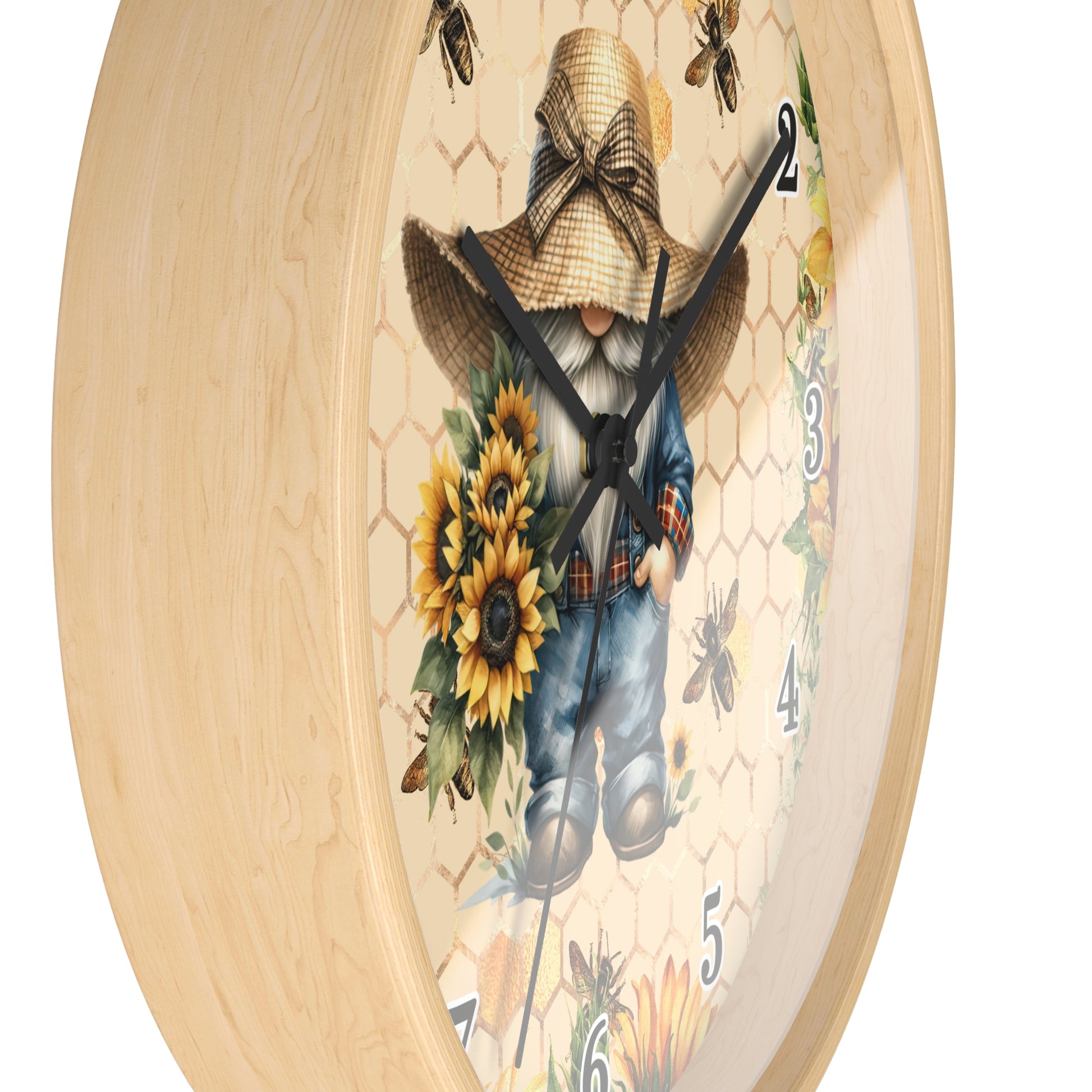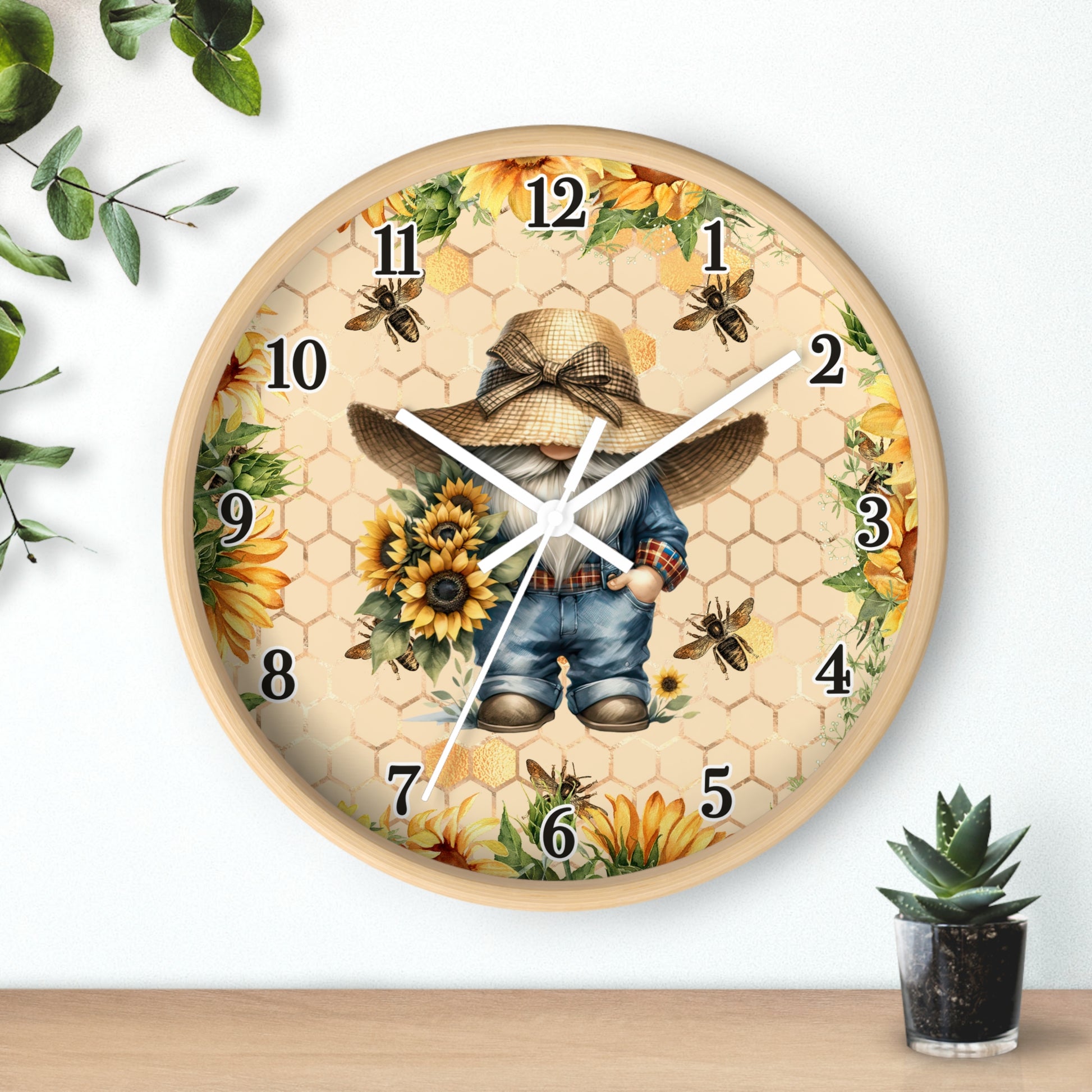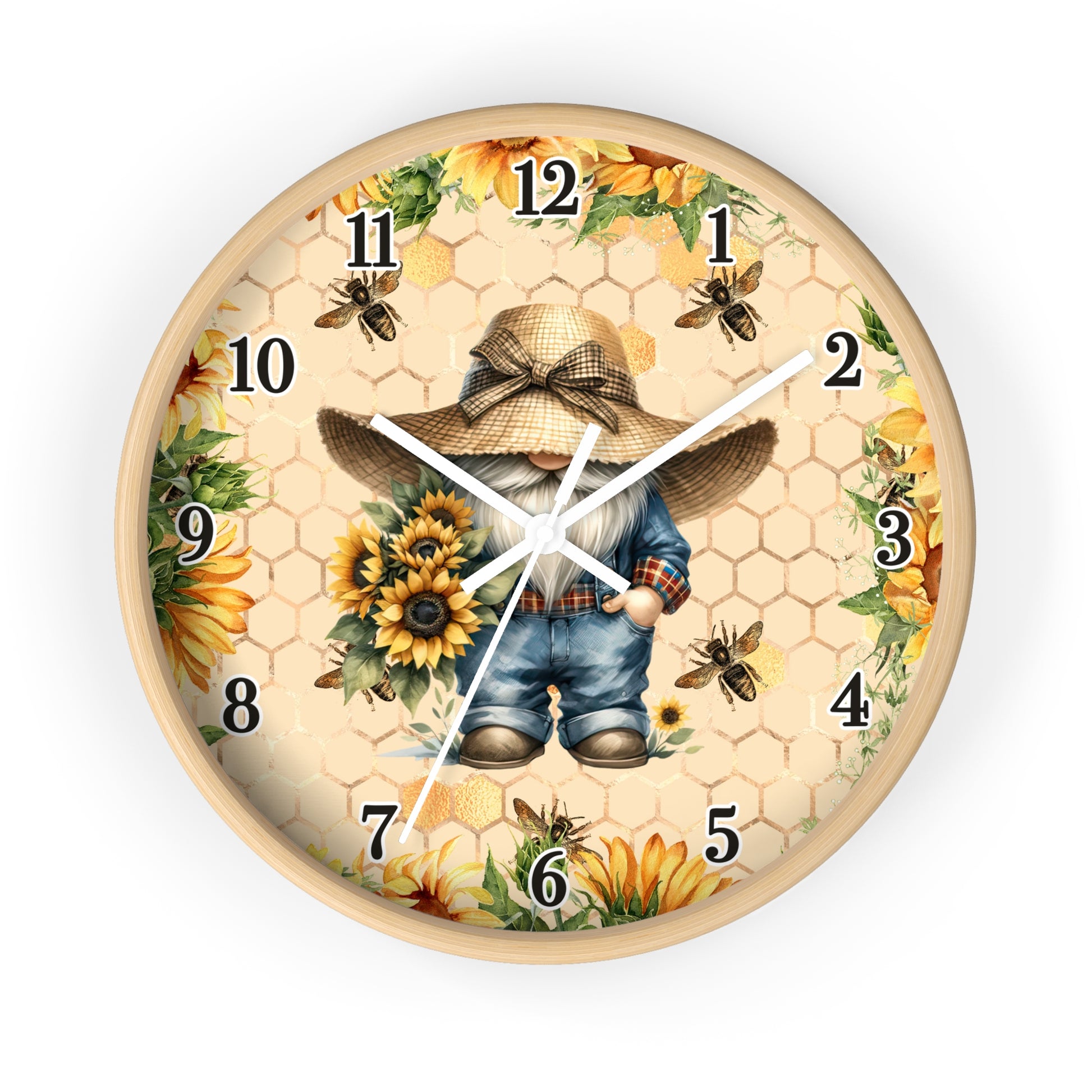 Sunflower Farmer Wall Clock, Rustic Home Decor, Farmhouse Gift, Bee Theme Clock, Country Style Wall Art