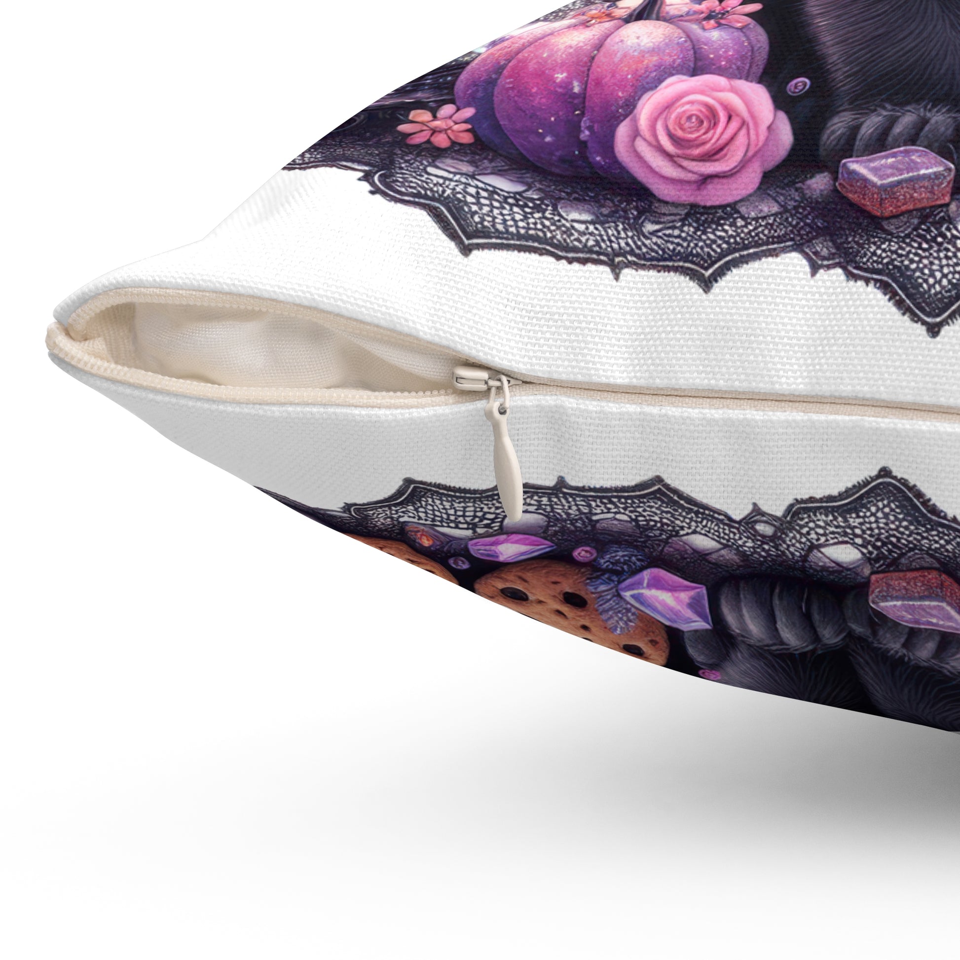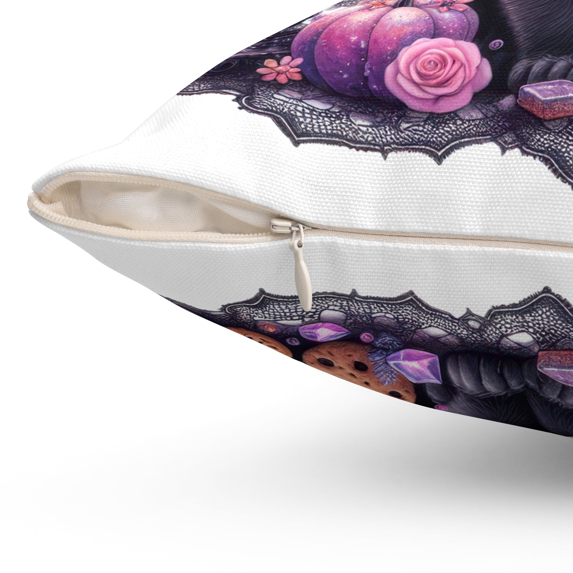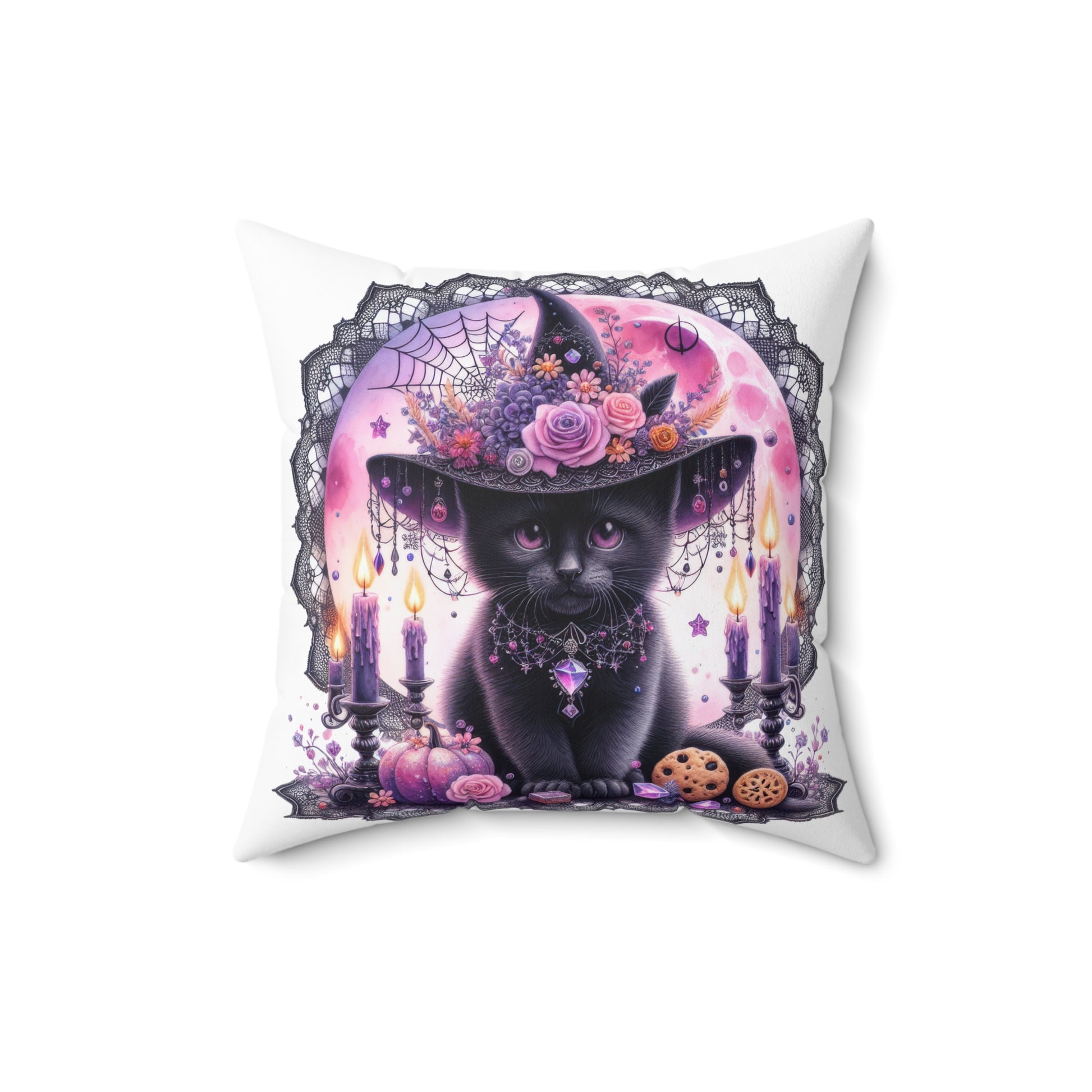 Elevate your decor with this charming square pillow, featuring a whimsical design that truly stands out. Perfect for cat lovers and fans of enchanting aesthetics, this pillow adds a cozy and inviting vibe to your space. Whether placed on a sofa, bed, or reading nook, it brings a playful yet sophisticated touch. The double-sided print ensures that it looks great from all angles. Ideal for home styling all year round, it particularly shines during Halloween and other festive celebrations. It’s a thoughtful gift for friends and family who appreciate unique, artistic home accessories.