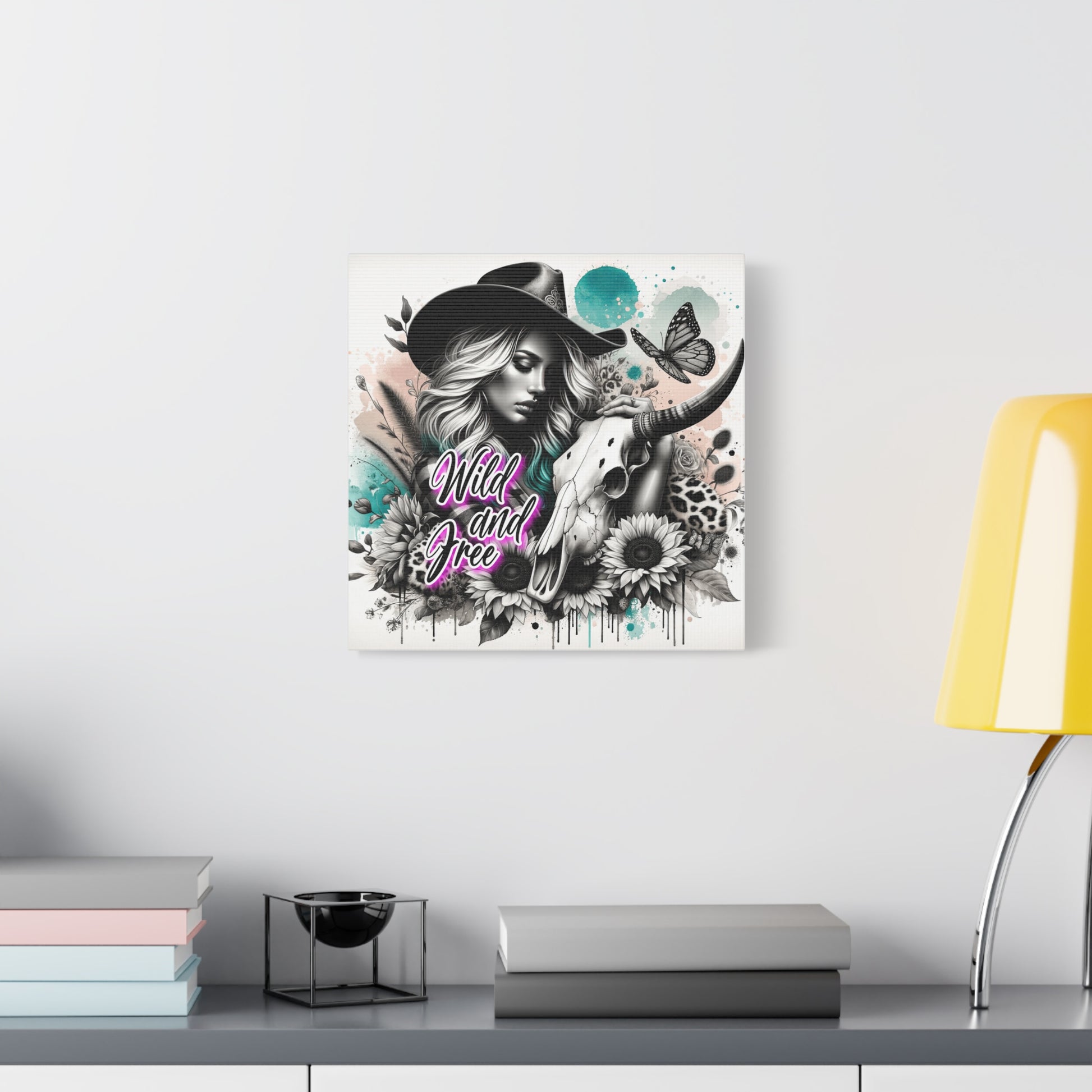 Wild and Free Canvas Art | Boho Wall Decor, Country Chic Home, Gift for Her, Cowgirl Decor, Butterfly Art