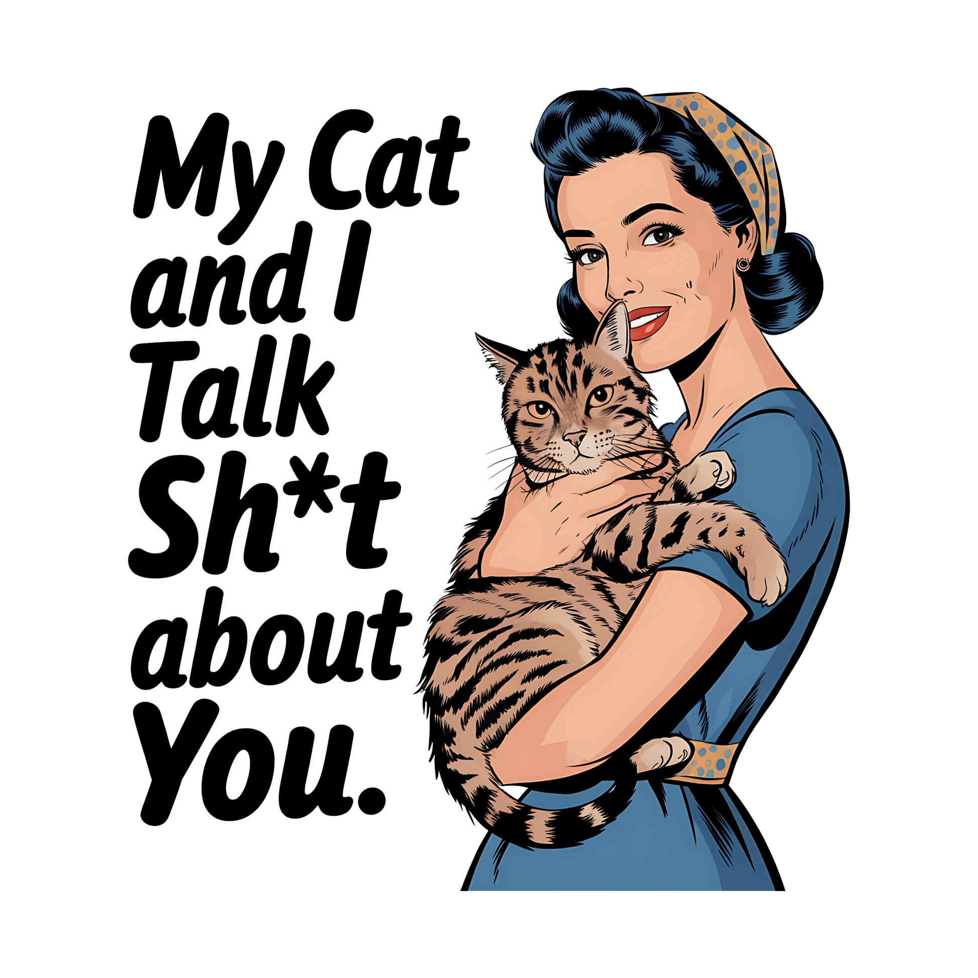 Women's Polyester blend V-neck shirt printed with My Cat and I Talk Shit About You